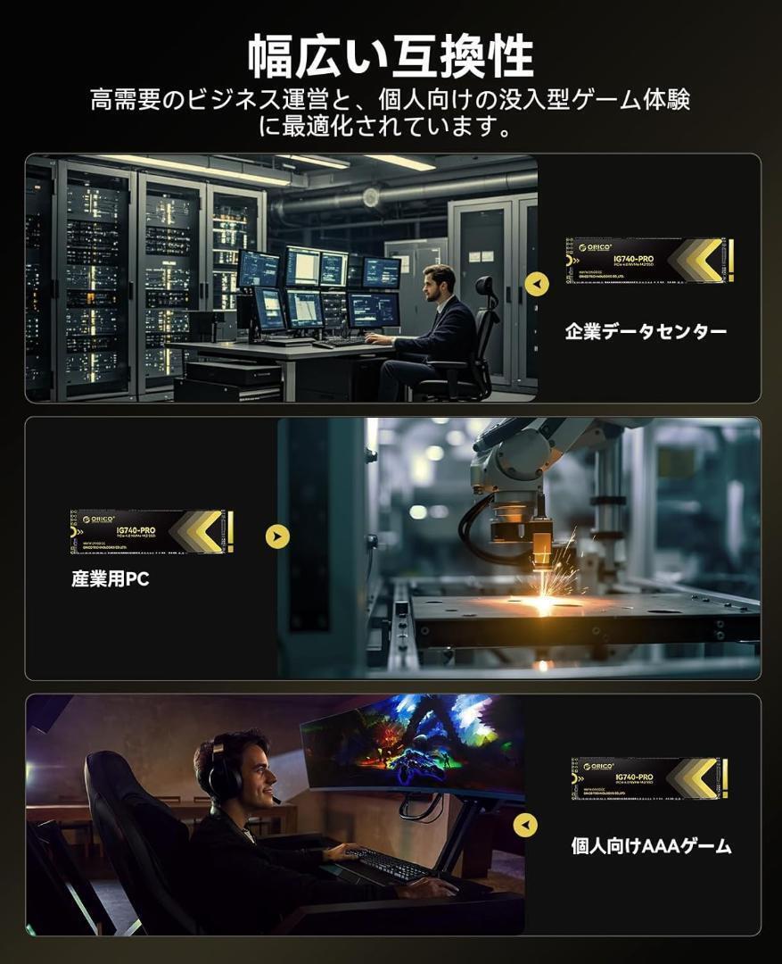 ORICO IG740PRO 1TB 産業用内蔵SSD - PCIe 4.0 M.2 NVMe 2280 読取速度 7100MB/s 書込速度 6500MB/s 高耐久 3D TLC NAND搭載 1000TBW エッジコンピューティング・産業用PC・PS5対応| 出价者 | 信用 | 价格 | 时间 |