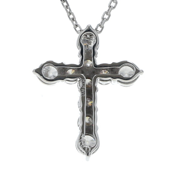 K18WG ホワイトゴールド ネックレス ダイヤモンド 0.50ct クロス 十字架 40cm【新品仕上済】【zz】【中古】 收藏