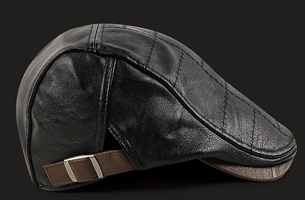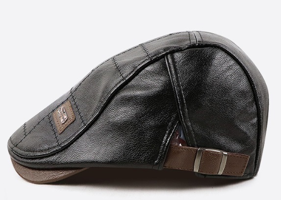 秋冬 新販売 PUハンチング ベレー帽子 メンズ 革帽子 野球帽 男性用 サイズ調整可 ブラック 收藏