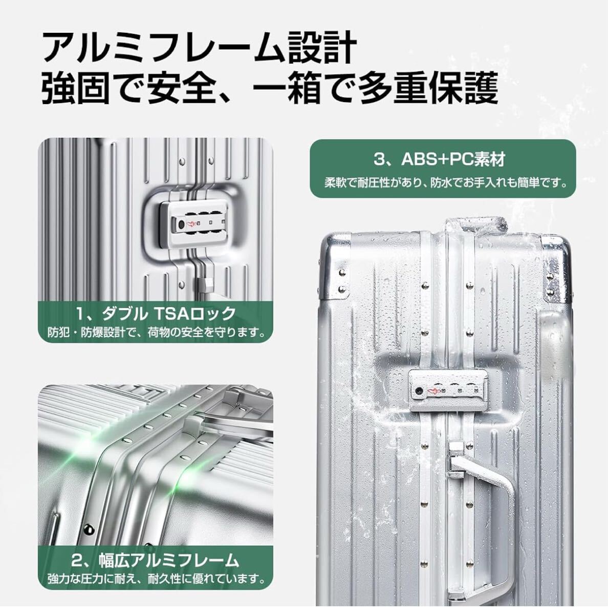 出張・旅行に最適!大容量スーツケース 頑丈なアルミフレームとダブルTSAロックで安心 乾湿分離・抗菌消臭機能付き 收藏
