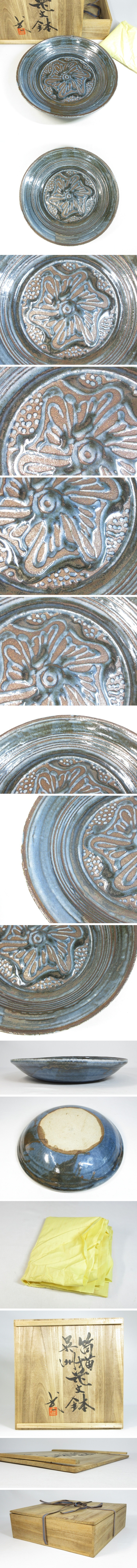 【B0817】民藝 河井武一 筒描呉須 花文鉢 径35cm 共箱 叔父:河井寛次郎 即決 收藏