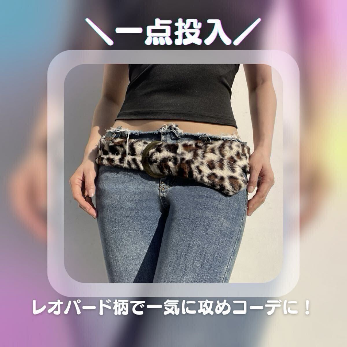 ヒョウ柄 ベルト ファー Y2K ストリート パンク ライブ ギャル グランジ 收藏