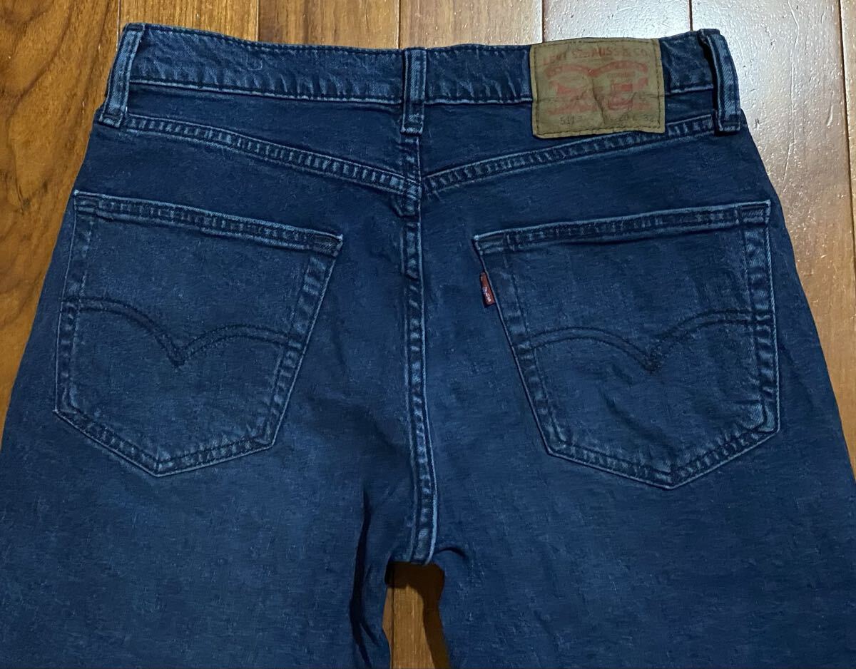 リーバイスのストレッチスリムテーパードデニム(ジーンズ)、04511-5192です。色はインディゴブルーです。USEDですが状態は良いです(10段階中8程度)。生地はストレッチ入りで綿70%、リヨセル28%、ポリウレタン2%です。紙パッチ、ジッパーフライです。正規品です(パキスタン製)。サイズはW30でウエストは重ねずに平置きで約79cm、ヒップ約100cm、股上約25cm、股下約77cm、股下15cmのふともも部分約51cm、裾まわり約36cm、重量約640gです。発送はゆうパケットポストになります。