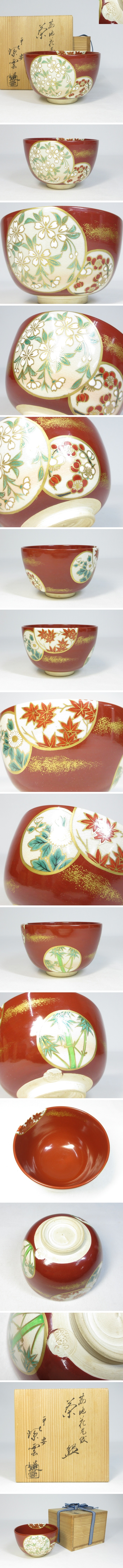 【B0601c】茶道具 京焼 橋本紫雲 茜地 花丸紋 茶碗 共箱 即決 收藏