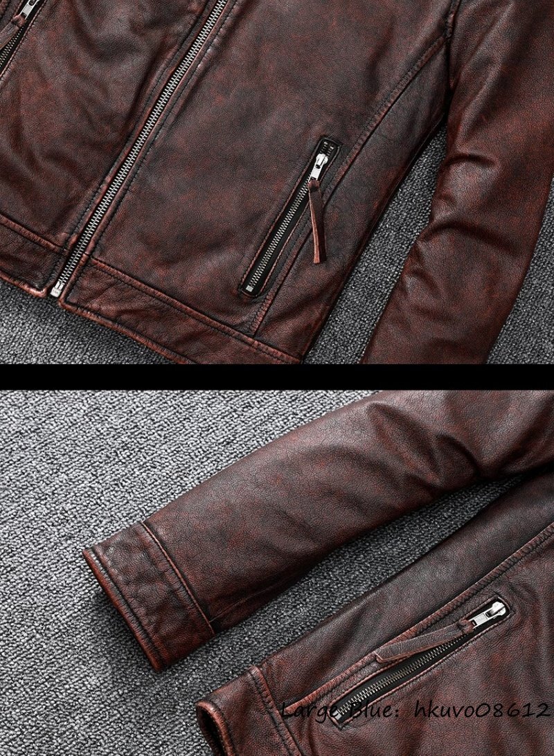 18万■最高峰 カウハイド 牛革 立ち襟 ヴィンテージ シングル イタリアンレザー ライダースジャケット レザージャケット バイクウエア M 收藏