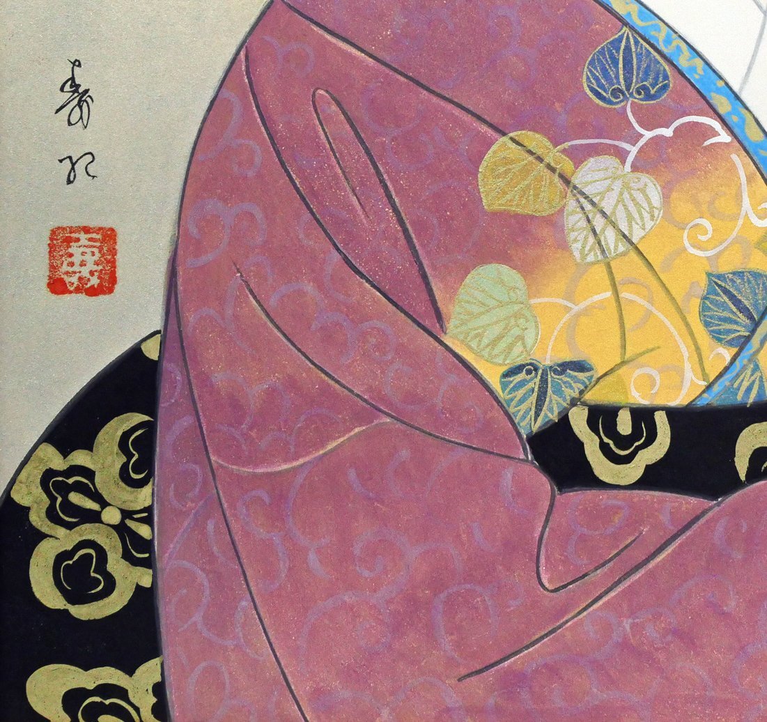 【小竹美術】真作保証■宮下壽紀(寿紀)「舞扇」日本画・F10号・共シール■美人画巨匠■師:伊東深水■大英博物館、山種美術館作品収蔵 收藏