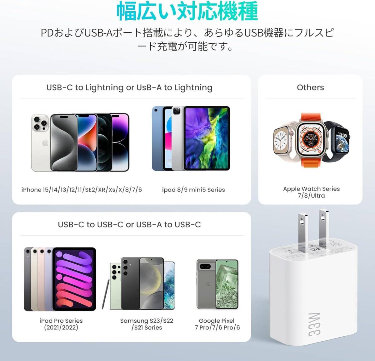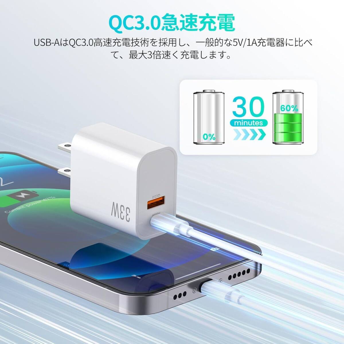 USB 充電器 ACアダプタ【33 W急速充電】USB-A TYPE-C【PSE 收藏
