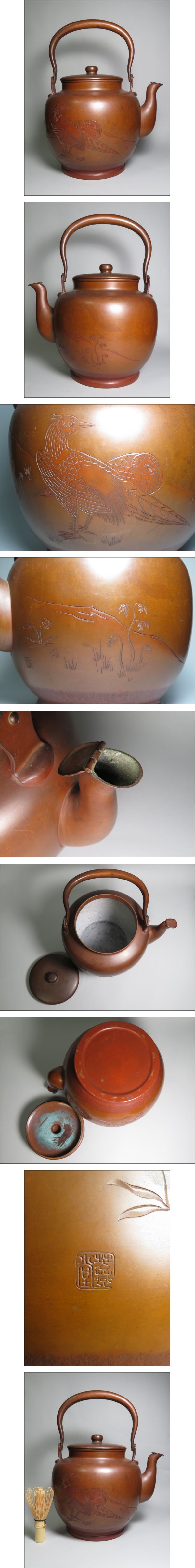| 時代物 芳燕堂造 銅器水注 鳥山水文 水注 湯沸し 煎茶道具 | |||