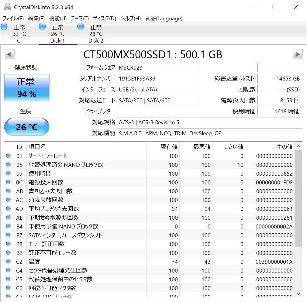 【使用時間1618時間】crucial MX500 500GB CT500MX500SSD1 2.5 SATA SSD 298 收藏
