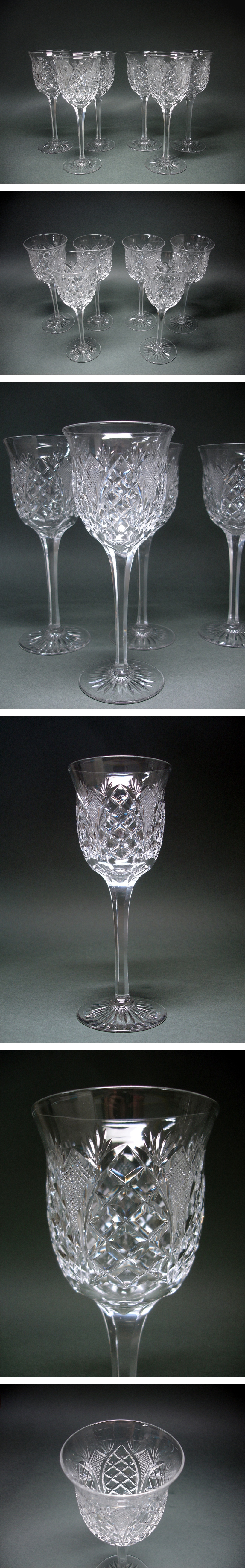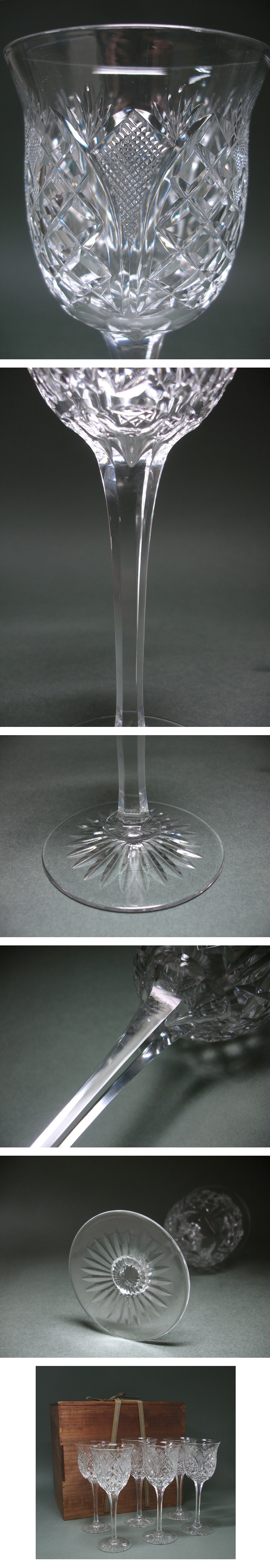 慶應◆舶来品 チェコ・ボヘミア カットガラスワイングラス 高脚酒杯 6客 (義山アンティークバカラコップ酒器洋酒盃 收藏