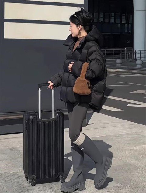 ショート丈アウター ジャケット フェイクダウン フード付き 厚手 防寒 シンプル カジュアル レディース S グレー 收藏
