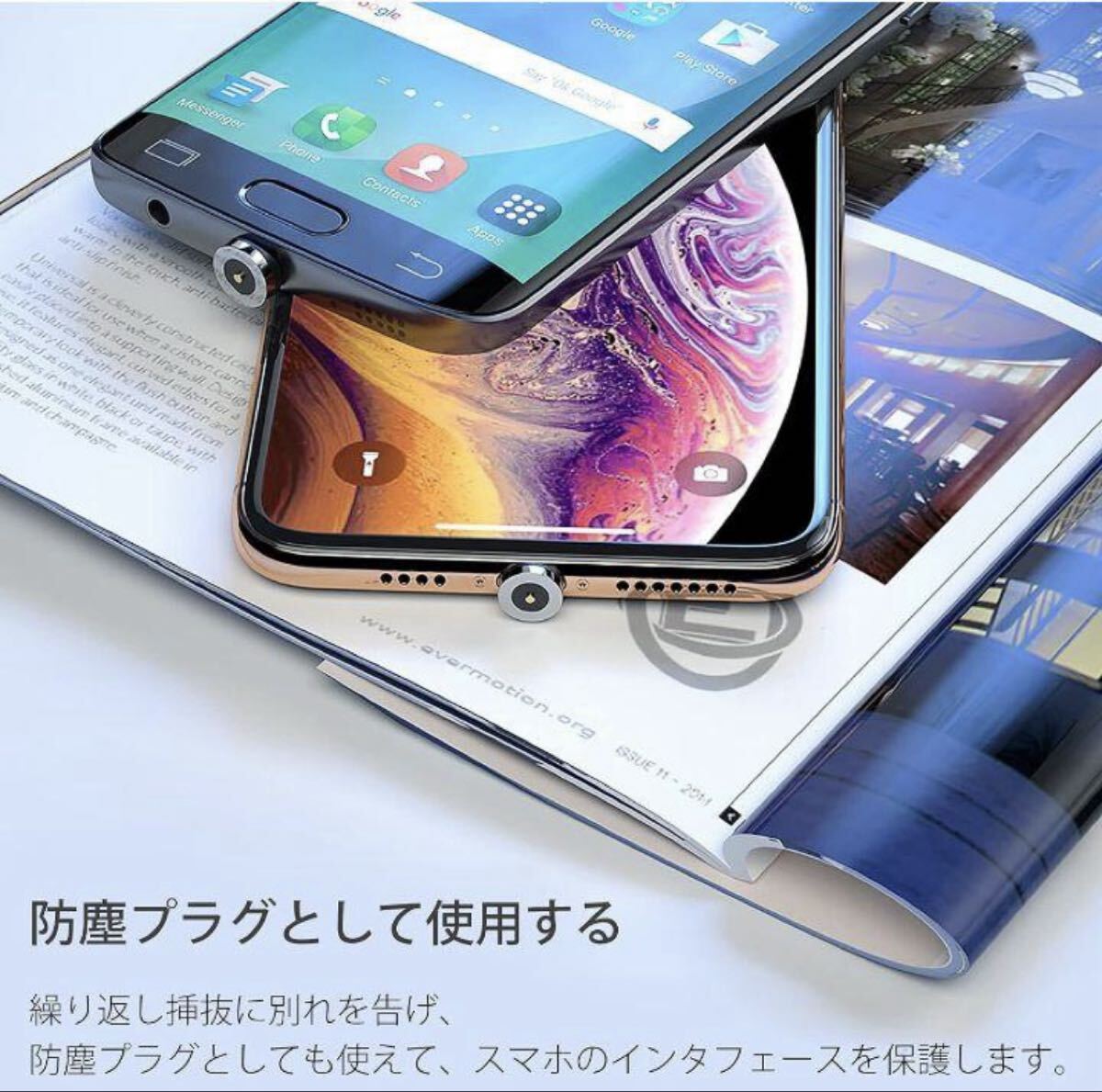 マグネットUSBケーブル Type-C、Micro USB、Type-L 3種類コネクタ、180度回転可能、長さ2M