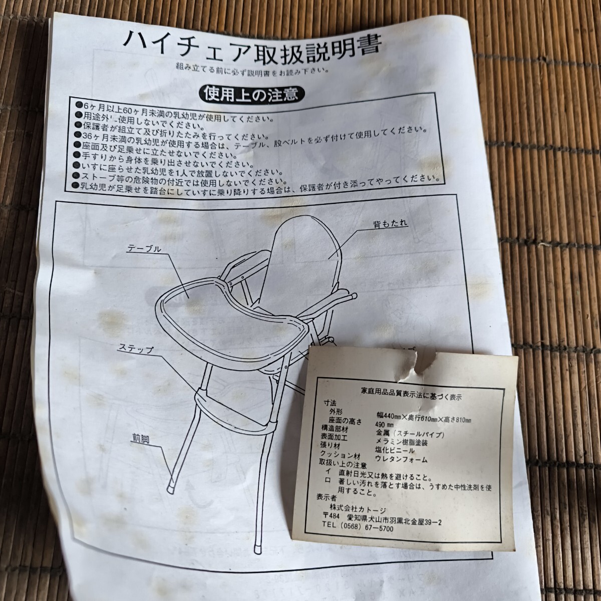 ◎【昭和レトロ ハイチェア】引き上げ品 年代物 当時物 チェア レトロ KATOJI カトージ 保管品 折りたたみ式 276-82