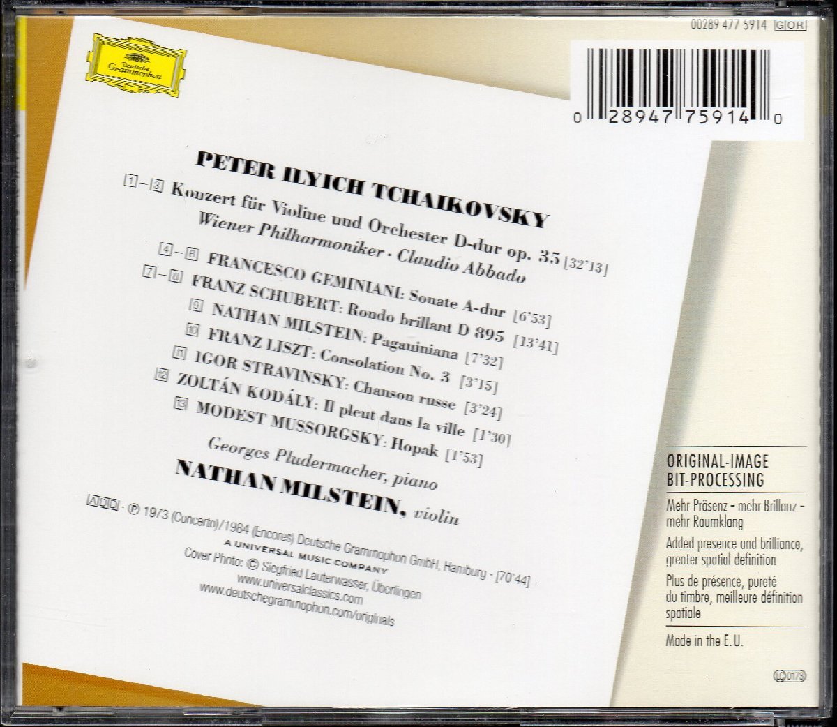 チャイコフスキー:ヴァイオリン協奏曲 他 ミルシテイン(vn) アバド=WP,プリュデルマシェ(p) (DG*4775914) 收藏