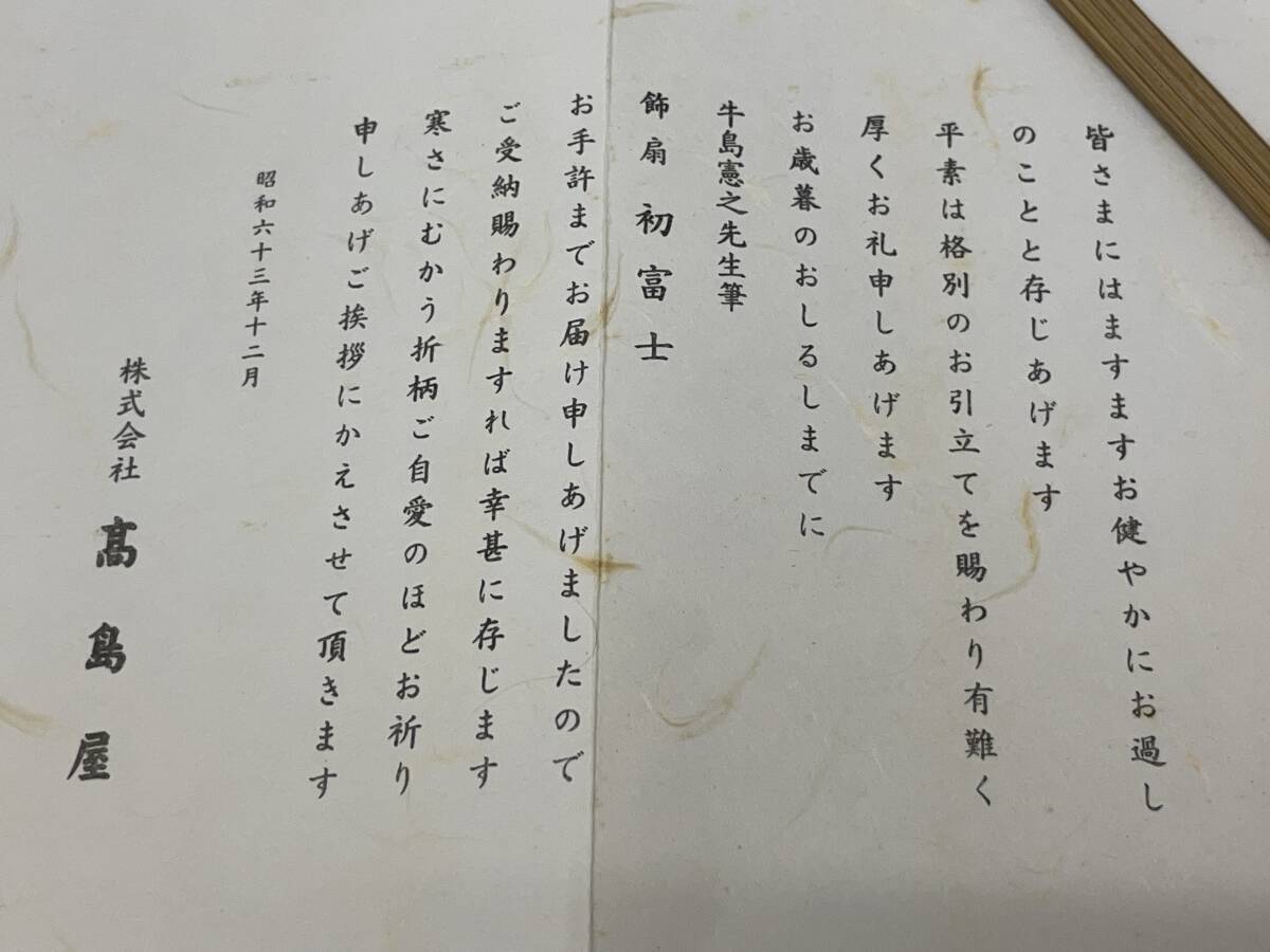 | 【Y1042】 高島屋 外商 末広 牛島憲之 筆 飾扇 初富士 未使用 | ||