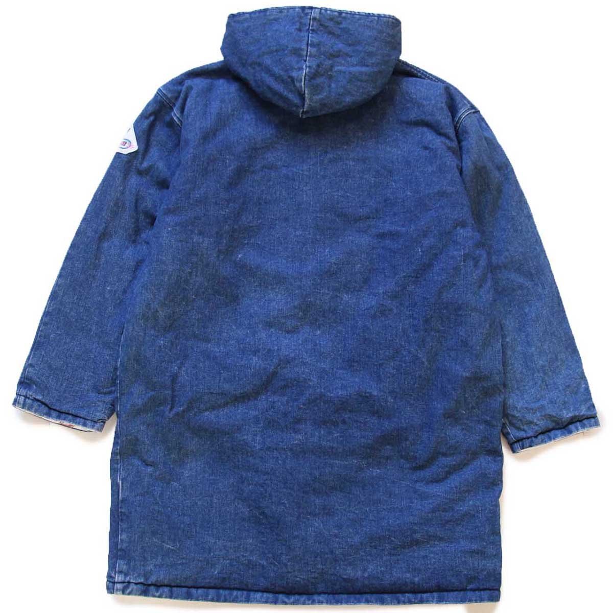 ★80s ragazzeria×Disneyディズニー ミッキー マウス パッチ付き ドナルドダック総柄 ライナー デニム ダッフルコート★ビンテージ ユーロ 收藏