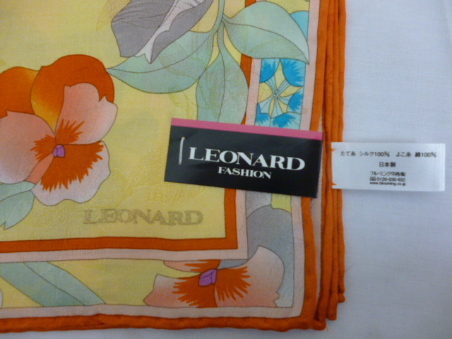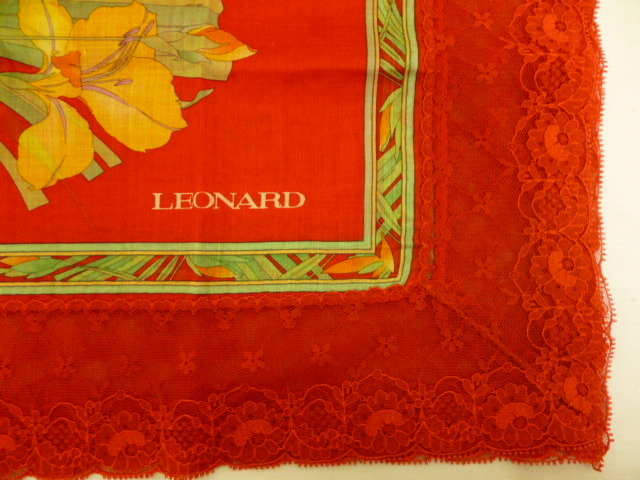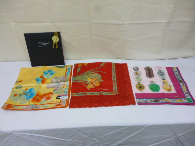 【M43315】LEONARD レオナール 大判ハンカチーフ ミニスカーフ 3枚 レース シルク 綿 ひざ掛け 未使用保管品 シール無し2点 收藏