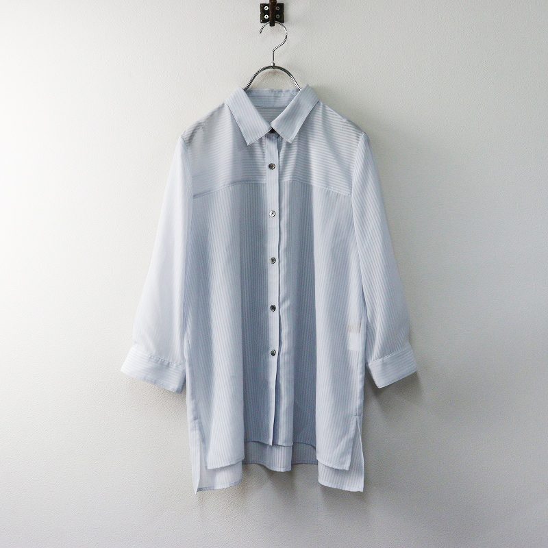美品 定価19800円 2025年 レリアン ホワイトレーベル Leilian WHITE LABEL シアーストライプブラウス 9 スカイブルー系┃【2400014659078】 收藏