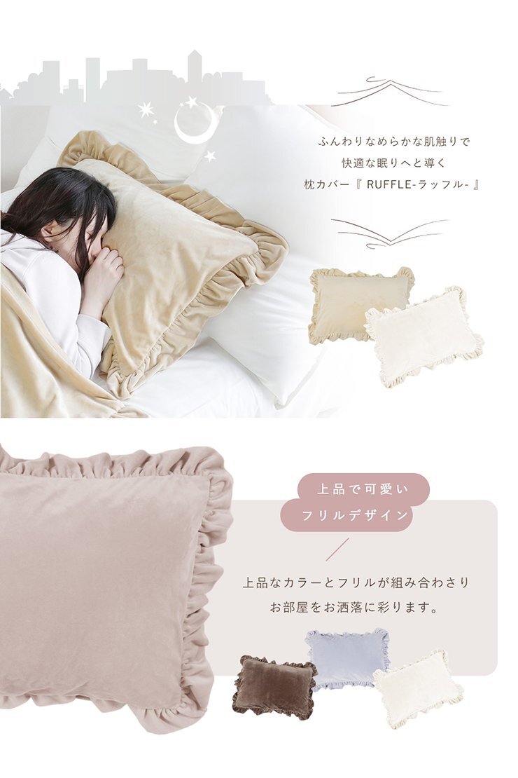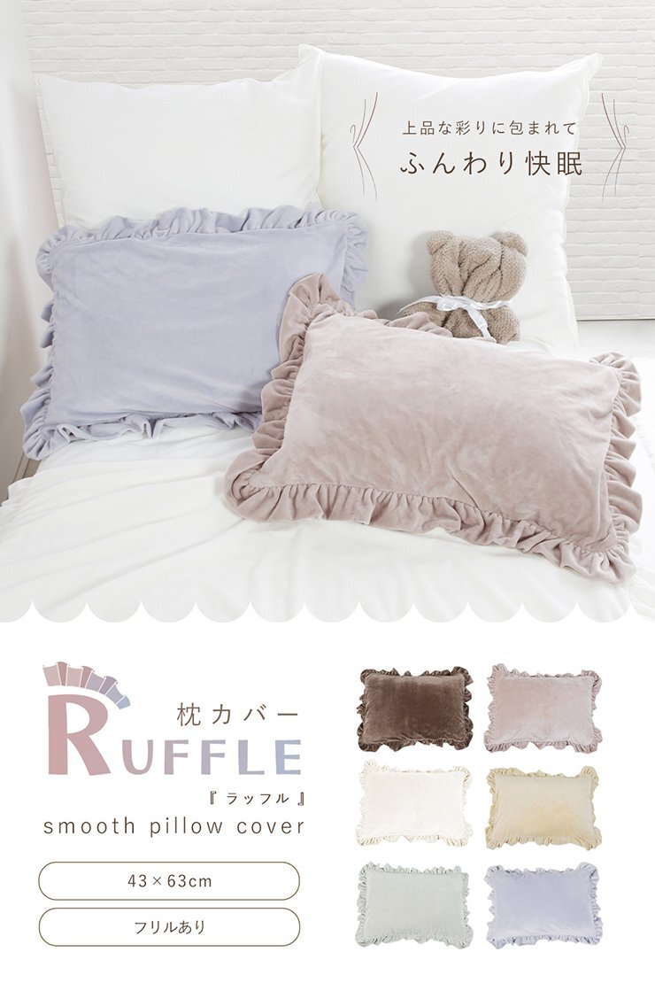 枕カバー ピローケース フリル水晶フランネル 43×63cm用 まくらカバー 封筒式 ファスナー かわいい カバー 寝具 洗濯可 ココアブラウン 收藏