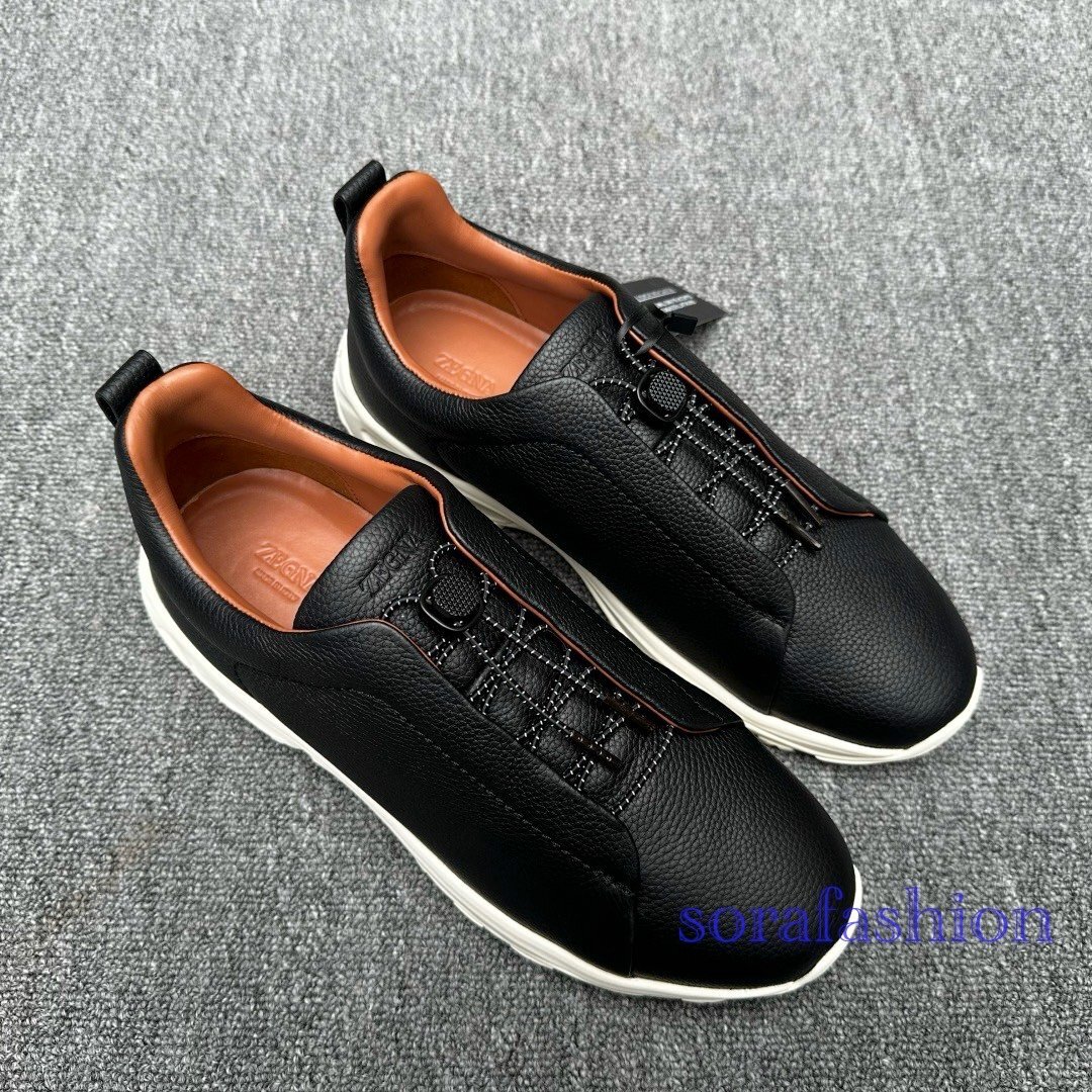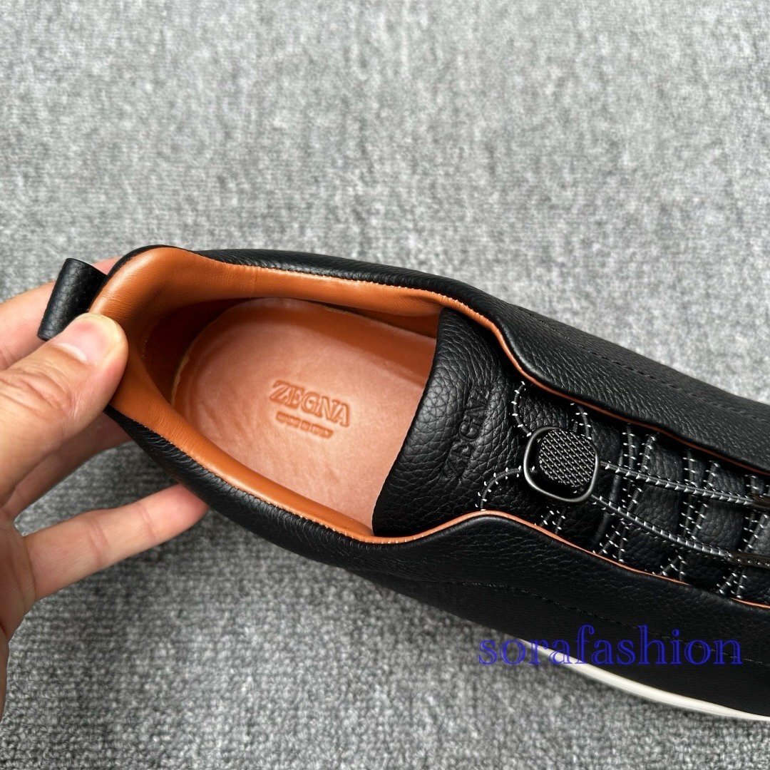 Ermenegildo Zegna エルメネジルド ゼニア メンズウォーキングシューズ スニーカー EU39 本革 ブラック ローカット靴 Triple Stitch 收藏