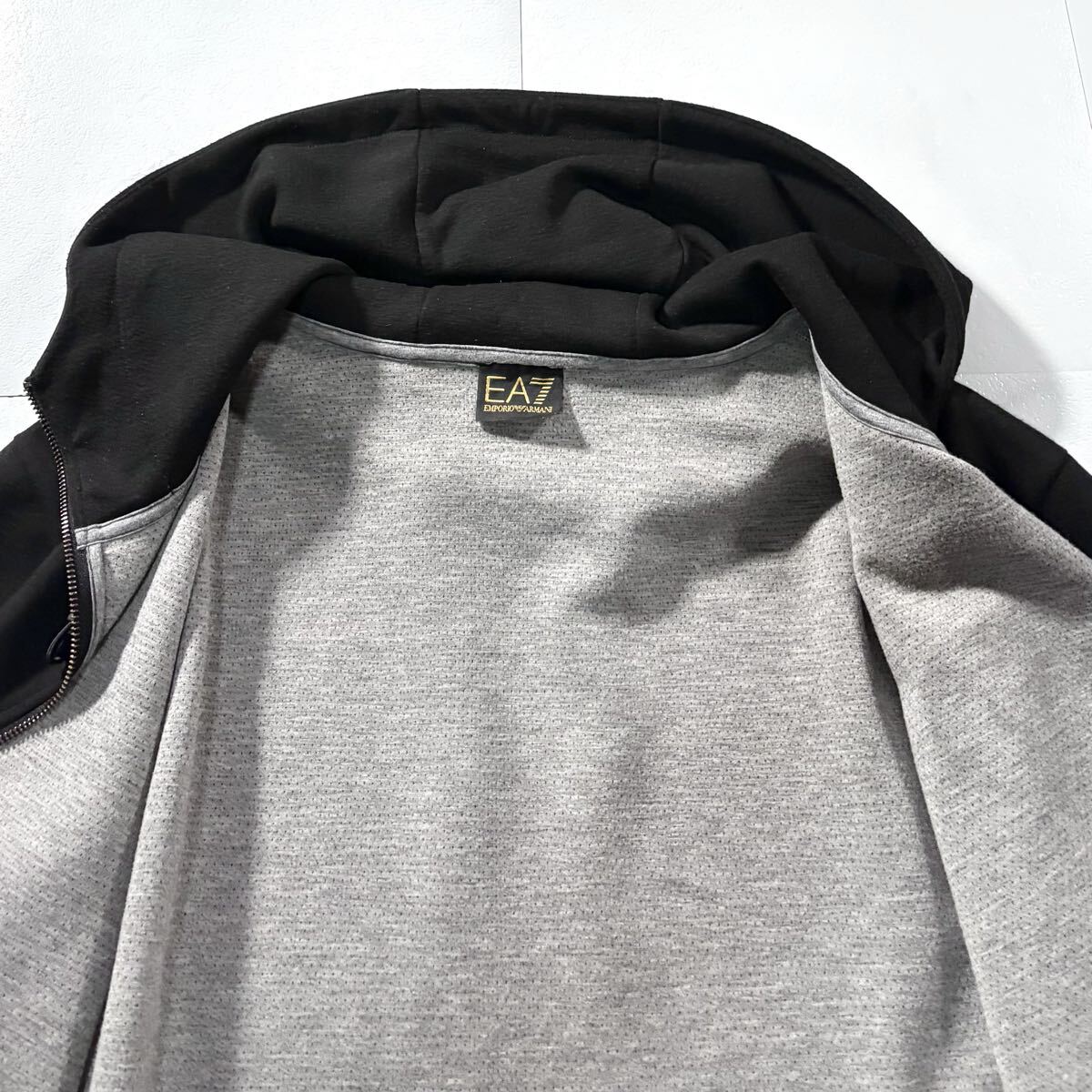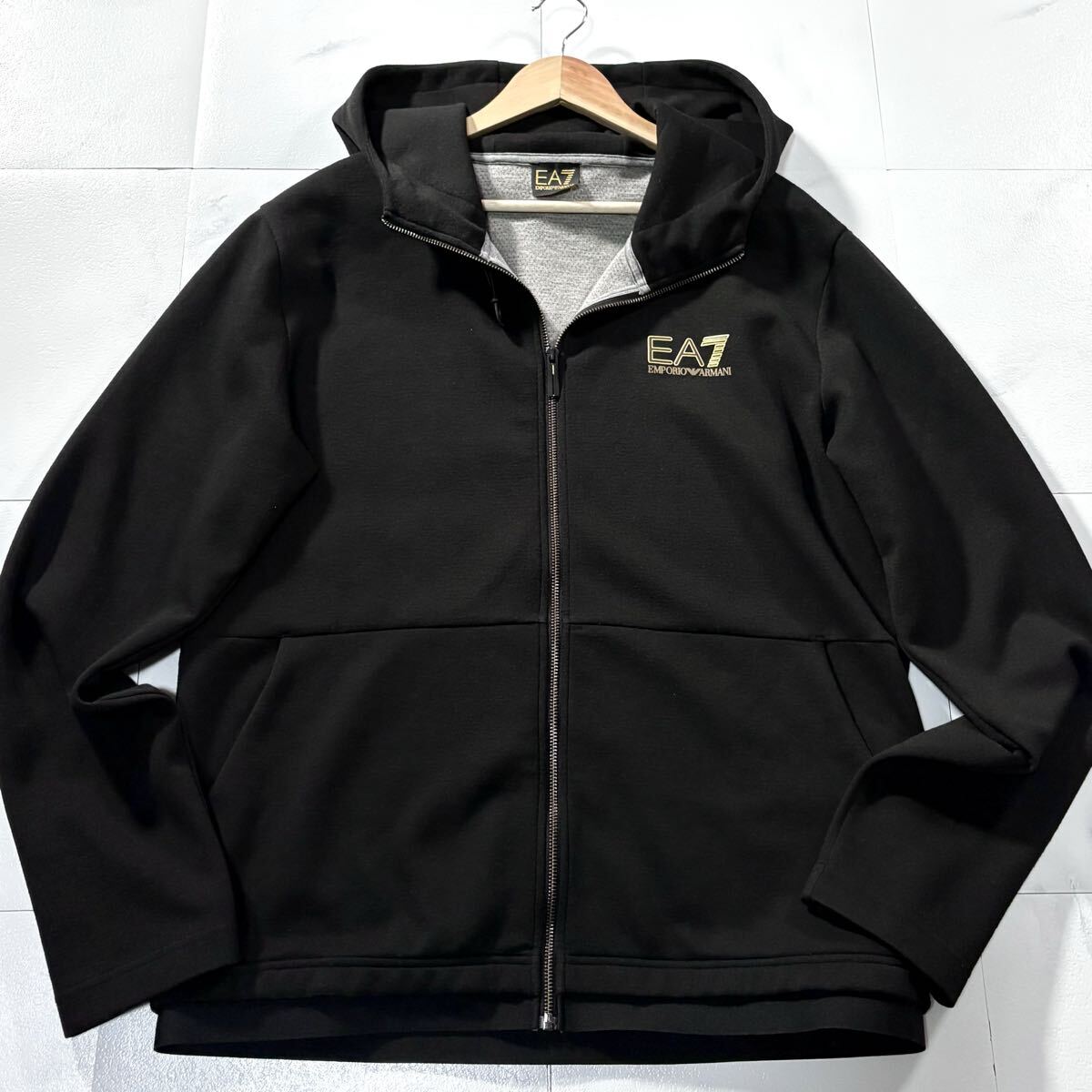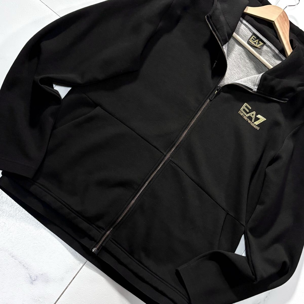 美品/XLサイズ●EMPORIO ARMANI エンポリオ アルマーニ ジップ パーカー ジャケット フード ストレッチ 胸元EA7ロゴ 黒 ゆったり 收藏