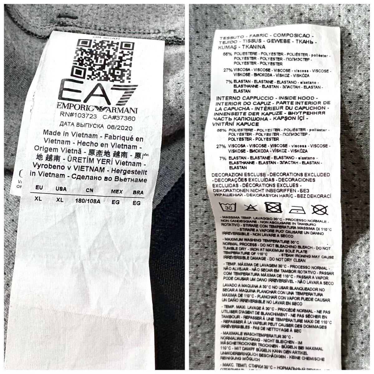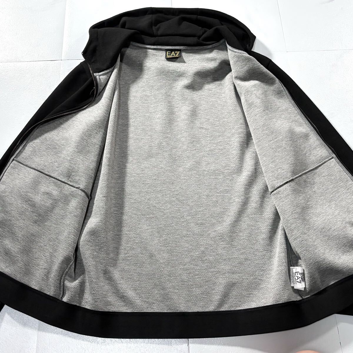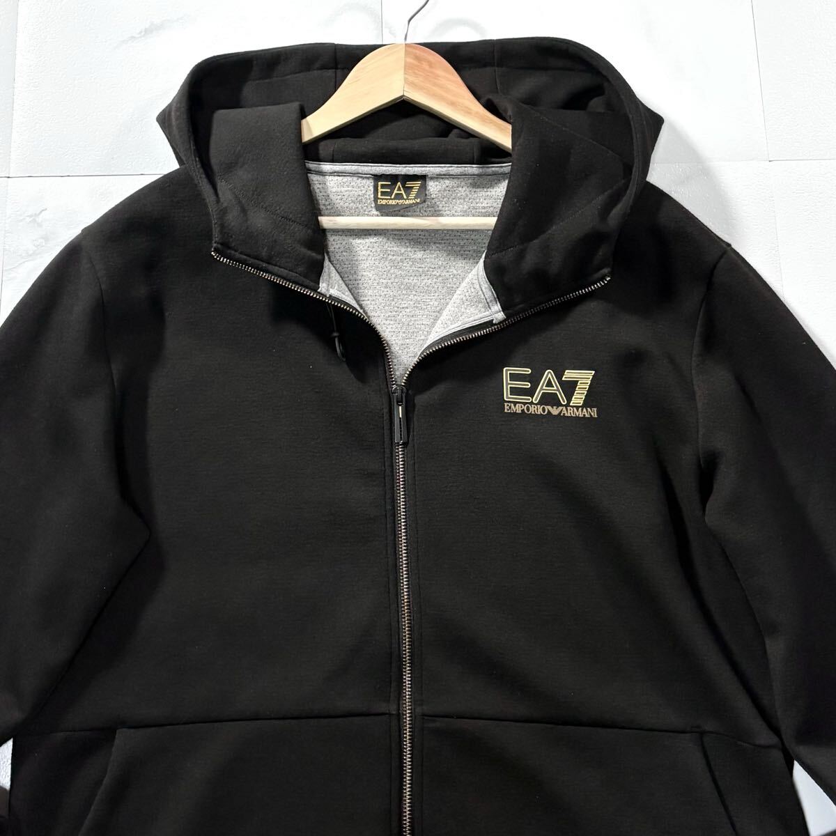 美品/XLサイズ●EMPORIO ARMANI エンポリオ アルマーニ ジップ パーカー ジャケット フード ストレッチ 胸元EA7ロゴ 黒 ゆったり 收藏