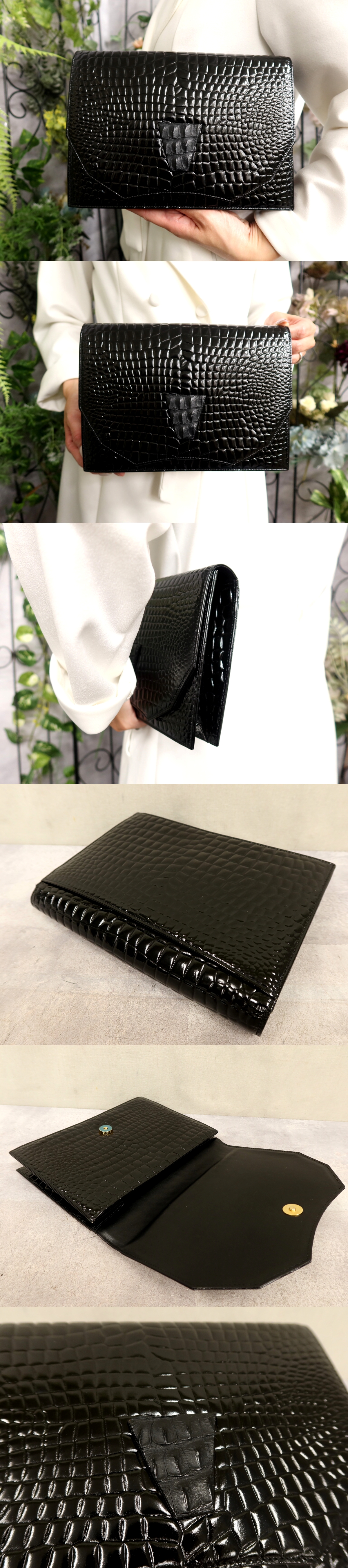 ●超美品●YSL Yves Saint-Laurent イヴ・サンローラン●クロコダイル 型押し レザー 本革●セカンド クラッチ バッグ●黒●G金具●Js61711 收藏
