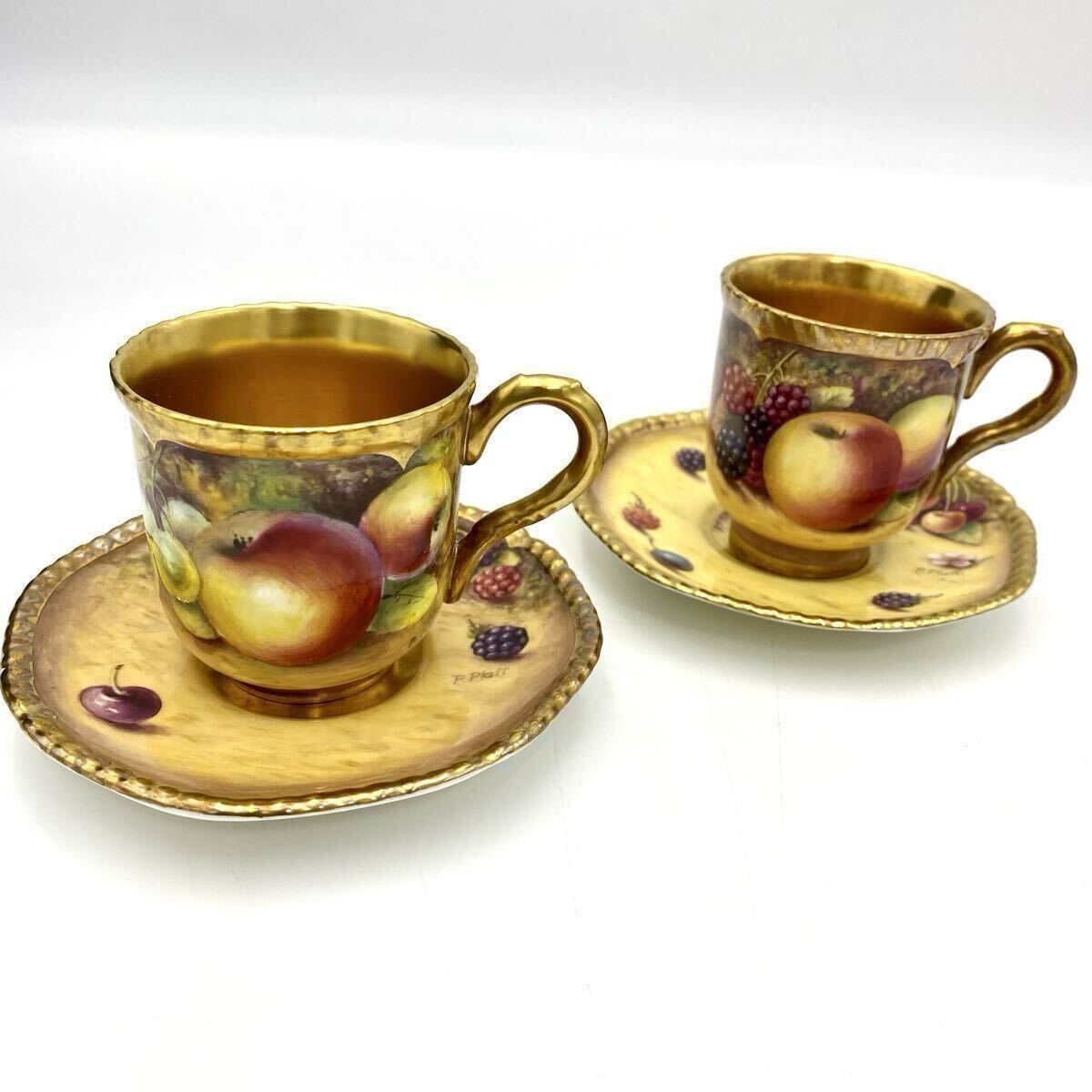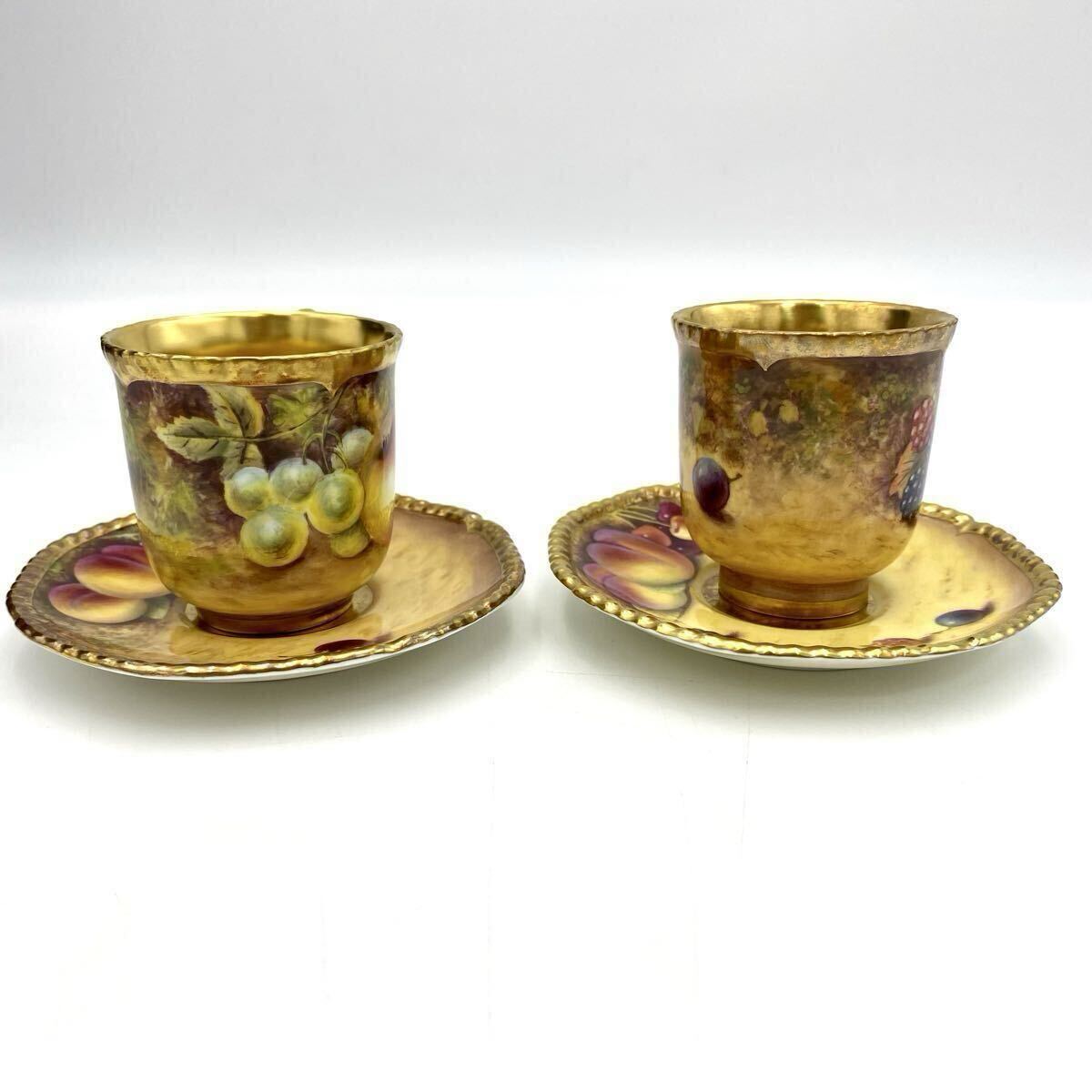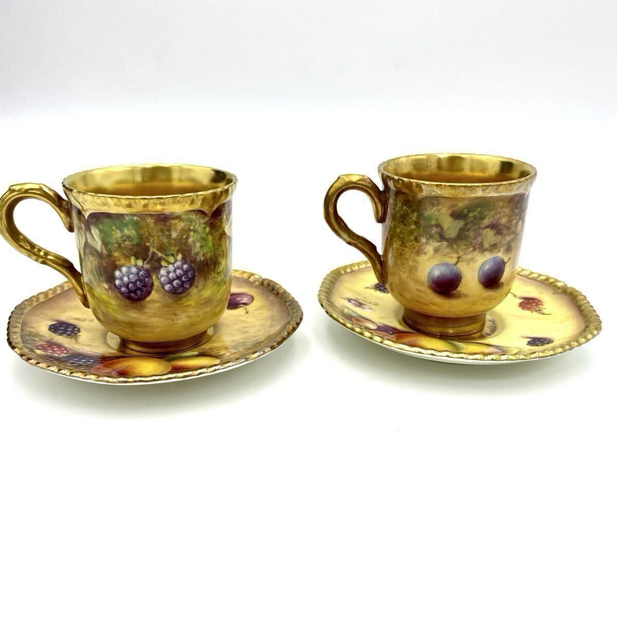 【希少/高級】 ROYAL WORCESTER ロイヤルウースター ペインテッドフルーツ 金彩 カップ ペア アンティーク イングランド製 箱付き 收藏
