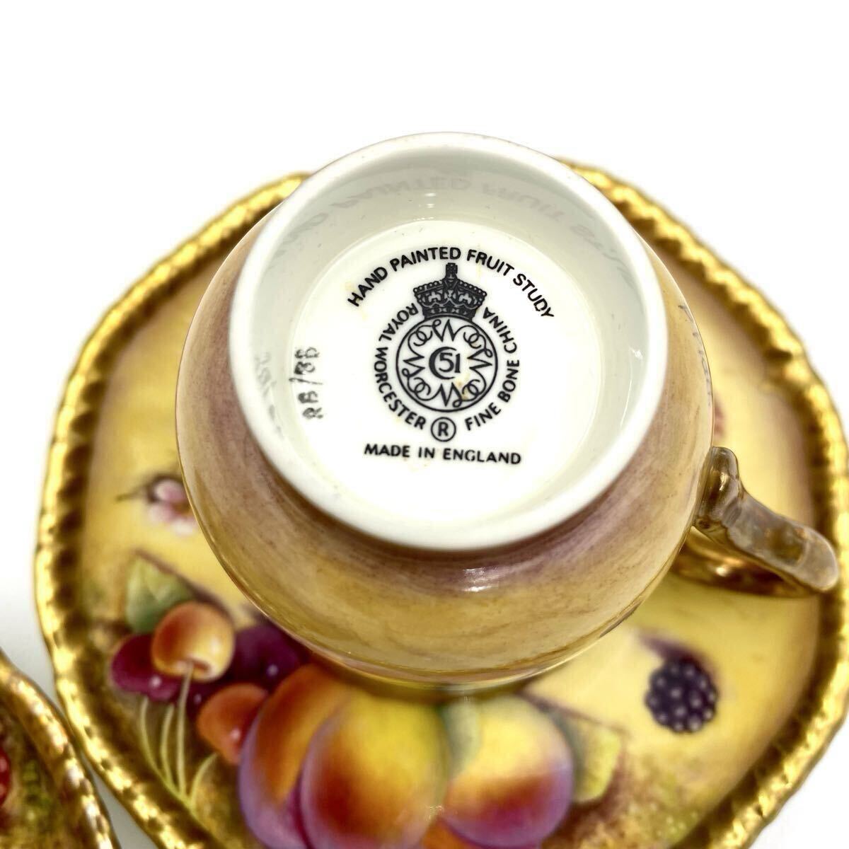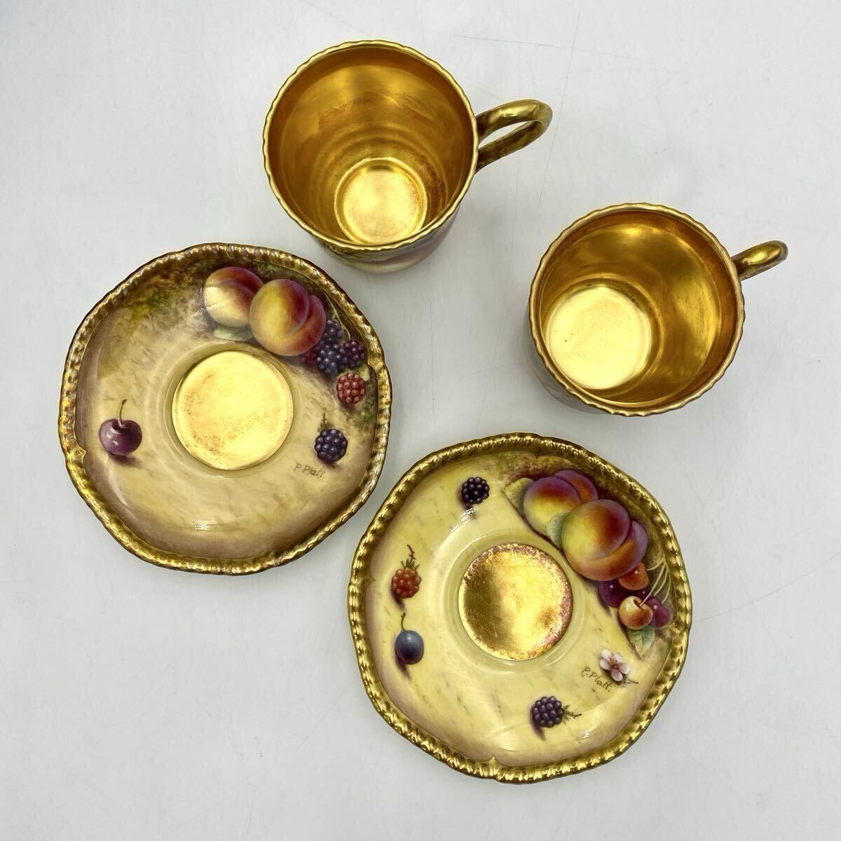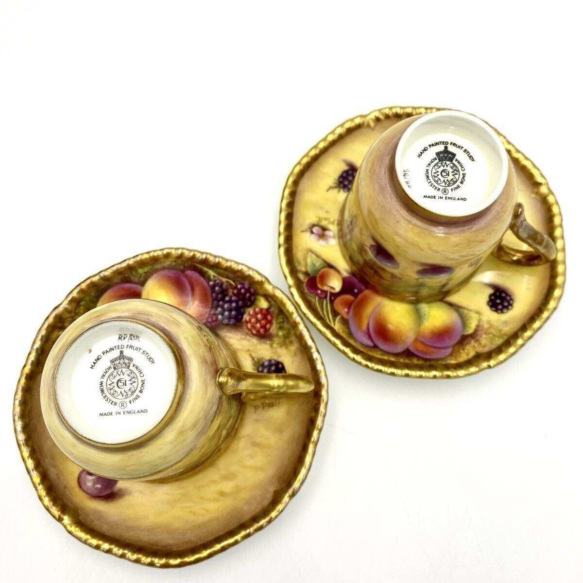 【希少/高級】 ROYAL WORCESTER ロイヤルウースター ペインテッドフルーツ 金彩 カップ ペア アンティーク イングランド製 箱付き 收藏