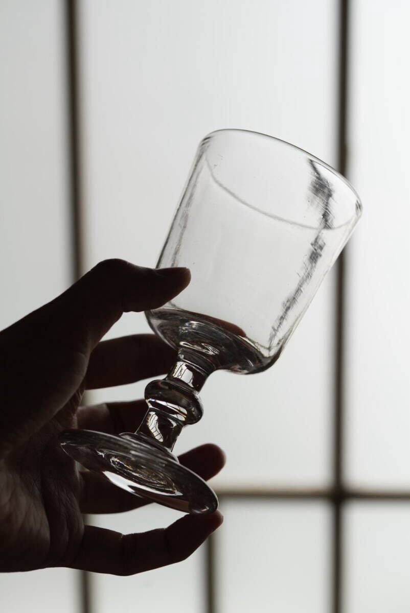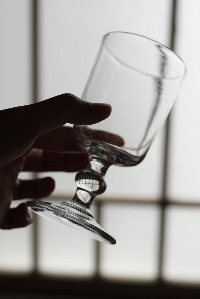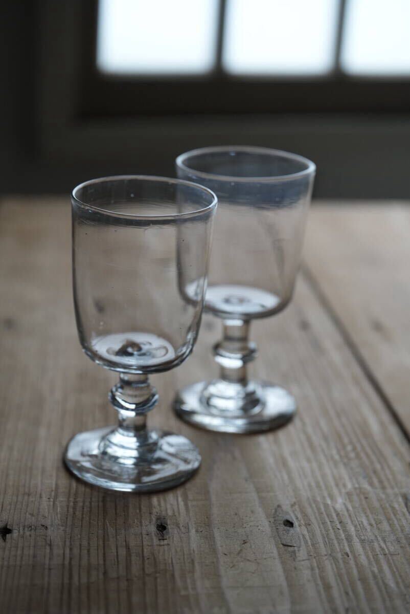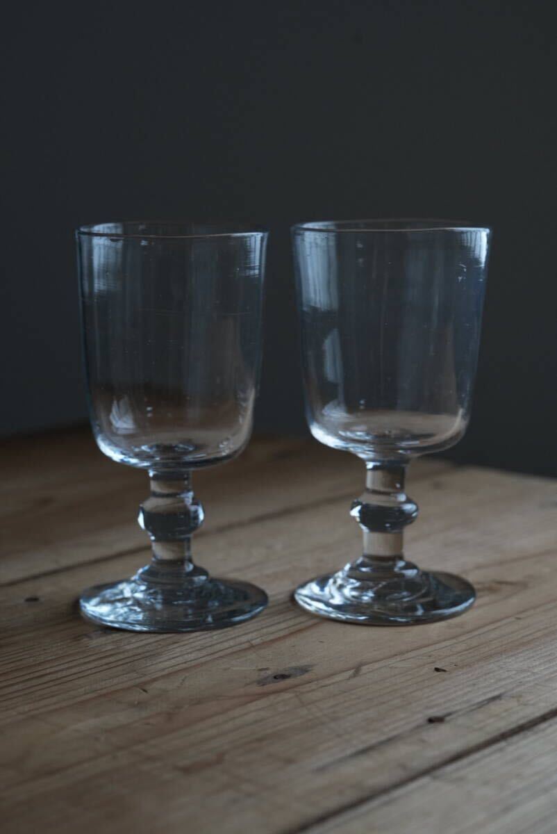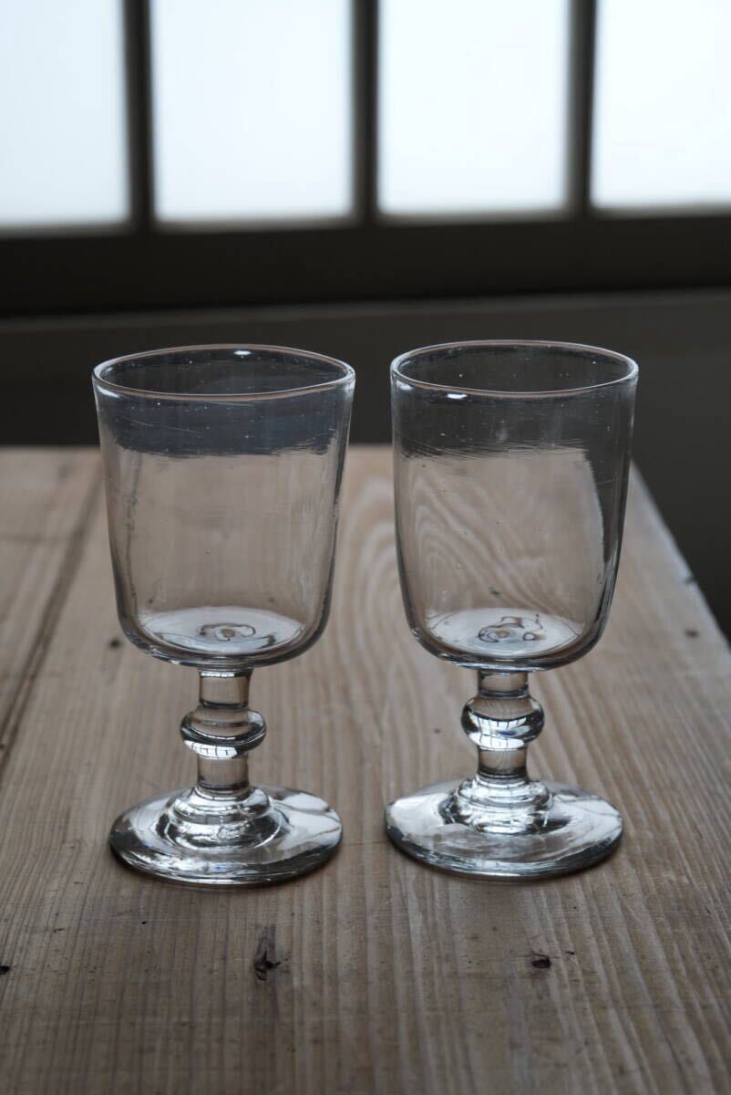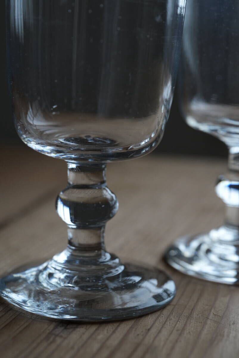 2客セット 古い手吹きガラスのシンプルな筒型の玉ステム ビストログラス / 19世紀 1800年代・フランス / アンティーク 古道具 ワイングラス 收藏