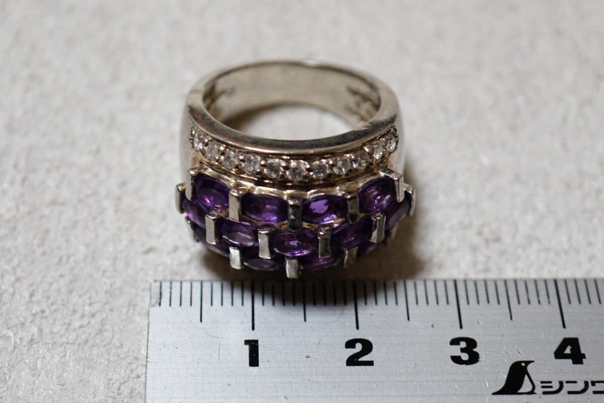 1496 天然アメジスト リング 指輪 ヴィンテージ アクセサリー SILVER 925刻印 天然石 色石 宝石 カラーストーン 装飾品 收藏
