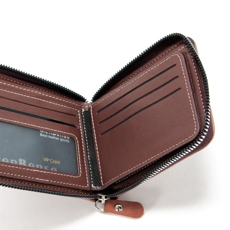 【訳あり品】メンズ二つ折り財布⑯マルチカードホルダー・財布 ブラウン 小銭入れふた部分にヨレ有り レトロ風 新品 收藏