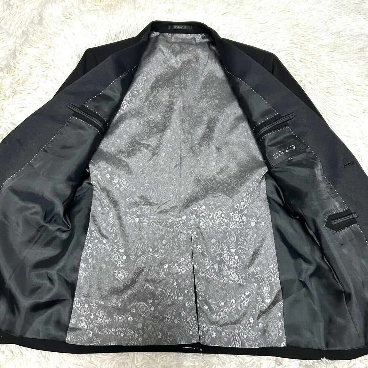 1円 未使用級 MONSIEUR NICOLE ニコル 3ピース スリーピース セットアップ スーツ ベスト付き ブラック ワンボタン 総裏地 タキシード 毛 收藏
