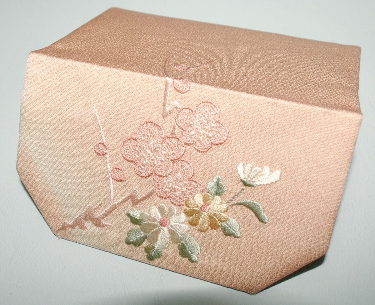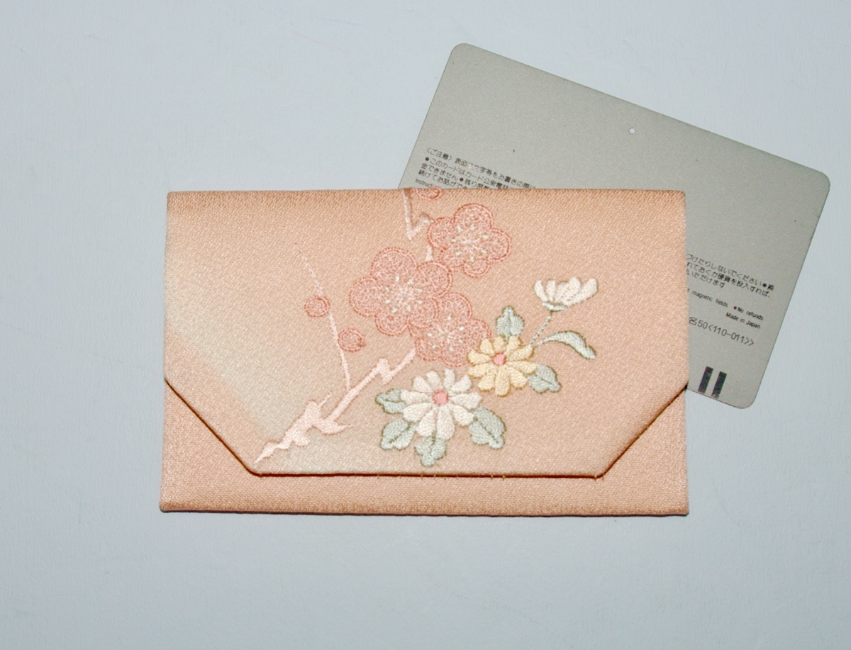 [佳]112)正絹名刺入れ 薄サーモンピンクに刺繍の菊 カードケース 保険証診察券 敬老パス ハンドメイド 着物リメイク 收藏