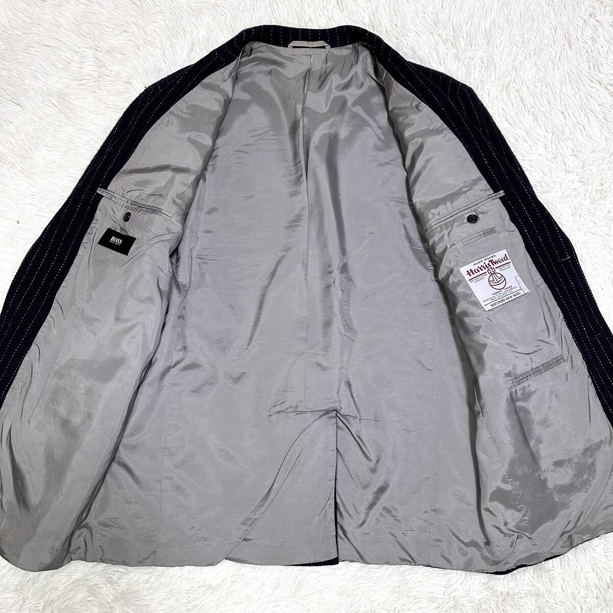 ヒューゴボス【Harris Tweed 圧倒的XXXXLサイズ ツイード】HUGO BOSS テーラードジャケット 濃紺 ダークネイビー 56 4XL ハリスツイード 收藏