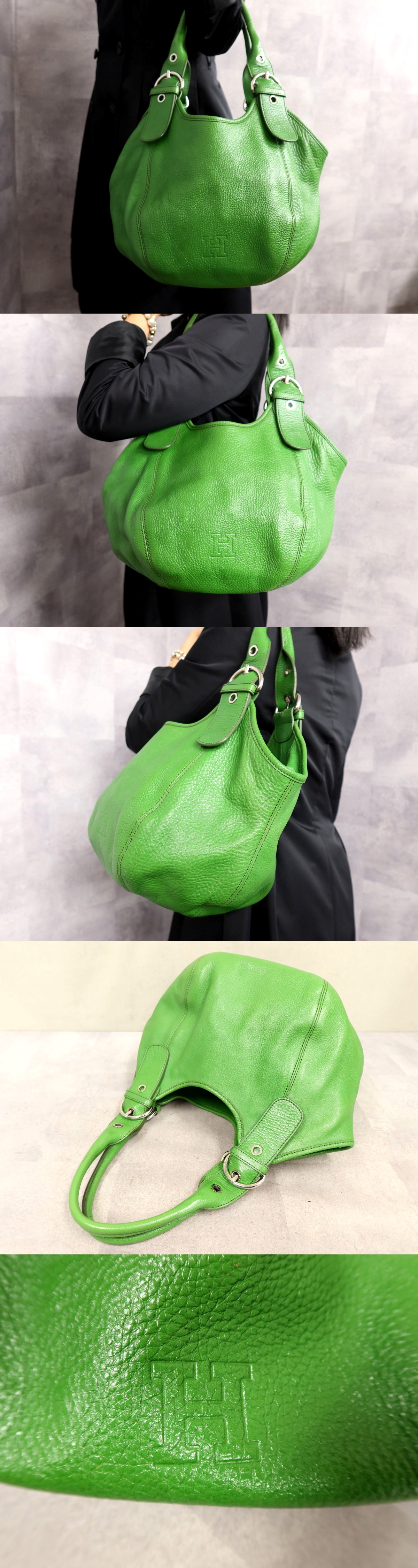 ●超美品●HIROFU ヒロフ●ロゴ型押し●カーフ レザー 本革●ショルダー トート バッグ●グリーン●シルバー金具●B5 収納 かばん●Js61976 收藏