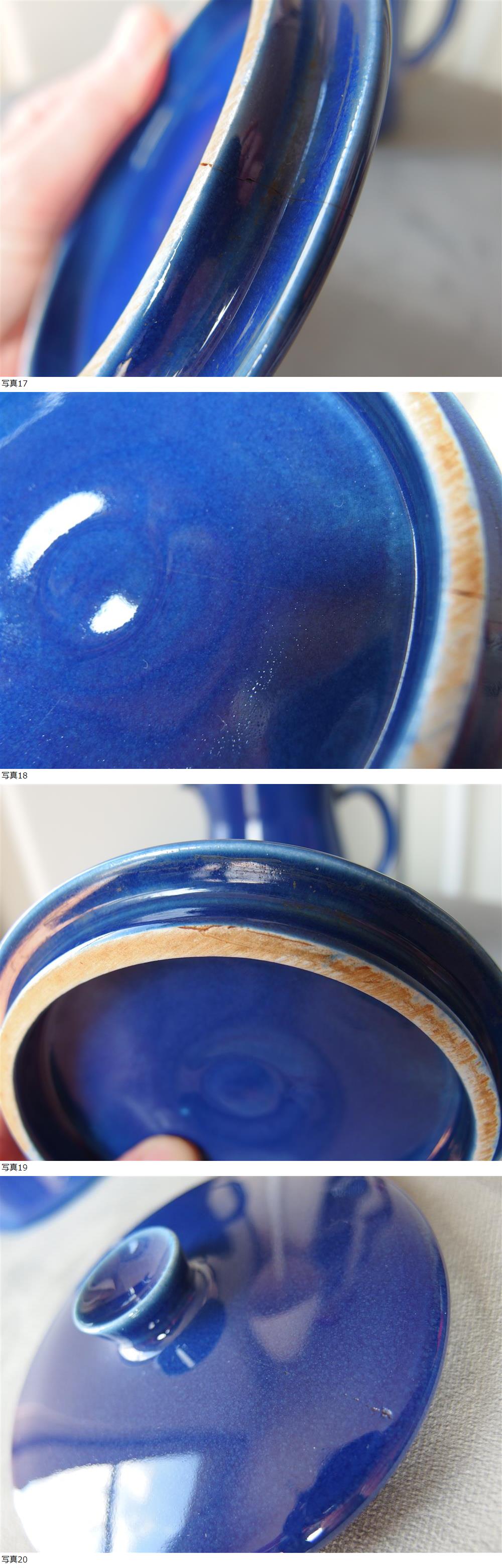 ![]() | 商品説明 フィンランドのアラビア社のKilta(キルタ)シリーズの蓋付きピッチャーです。 ピッチャーの大半は蓋が紛失していますが、蓋ありますがひび割れがあるのでおまけと思ってください。 IittalaのTeema(ティーマ)シリーズの原型となったKiltaシリーズは、Kaj Franck(カイ・フランク)によってデザインされ 1953年に発売されましたが、1970年代のオイルショックなどの影響で1975年に製造が終了しました。 その後、1981年にリプロダクトされ、Teemaとして生産が再開されました。 KILTAには「KILTA GLAZE」と呼ばれる独特の釉薬が使われており、経年による色の変化が現行TEEMAには無いやわらかい色味が暖かさを感じられます。 キルタシリーズの刻印は完全に消えてしまっているものが大半ですが、出品の品は、きれいに残っており1972年11月に製造されたことがわかります。 【状態】 底のふちに小さなカケとその周りに小さな亀裂あり。ひび割れほど深刻ではなく普通にお使いいただけます。 小傷が少し見つかりますが作品の雰囲気を損ねるほどではありません。蓋はひび割れが見られますが使える状態です。 全体的に艶やかで使用感はそれほど感じられません。 【お願い】 コンディションについては、なるべく詳細に記載していますが、細かいキズ擦れなど記載漏れがある場合がございます。 写真で状態を見て納得の上でのご購入をお願いします。いずれの場合も返品はお受けしませんので神経質な方は、入札をご遠慮下さいませ。 ヴィンテージのユーズド品への理解のある方のみの入札をお願いします。 【サイズ】 高さ: 16.5㎝ (蓋つき), 直径: 11㎝ 素人採寸に付き、若干の誤差が生じます。ご了承下さい。 光の加減やお使いのPCによって商品写真の色が異なる場合があります。 他にもヴィンテージ品を多々出品中です。宜しかったらご覧下さい。 発送方法 ★割れ物ですので補償のあるゆうパックになります。送料は、住所によって違ってまいります。発送は兵庫県からです。 前もって送料をお知りたい方は『出品者への質問』からお問い合わせください。 [ ご注意ください ] 発送中における事故や破損、紛失などのトラブルに関して当方では一切の責任を負いかねます。 コメント ★お願い 落札されて連絡を下さらない方には悪い評価が付きます。落札後24時間内に連絡のできる方に限らせて頂きます。 不明な点等ございましたら落札前に聞いてください。落札後のキャンセルは大変迷惑ですので絶対におやめ下さい。 |