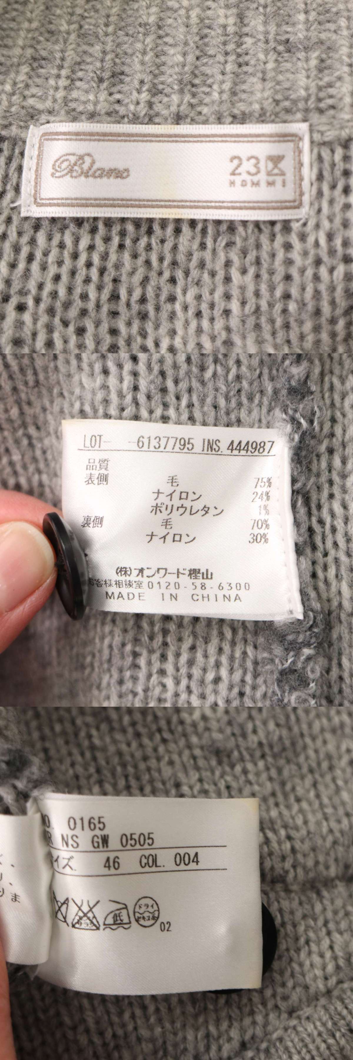 23区 HOMME オム 秋冬 ウール★ ニット ジャケット カーディガン Sz.46 メンズ 收藏