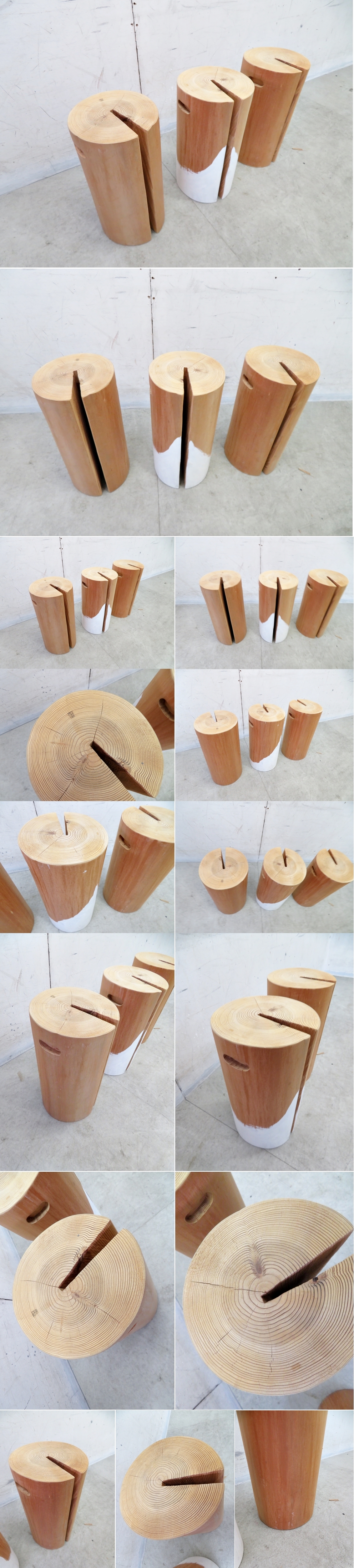 ■P633■展示品■和モダン■丸太/切り株■無垢材■ソリッド■年輪■スツール/ローチェア■3点セット■カントリー■サイドテーブル 收藏