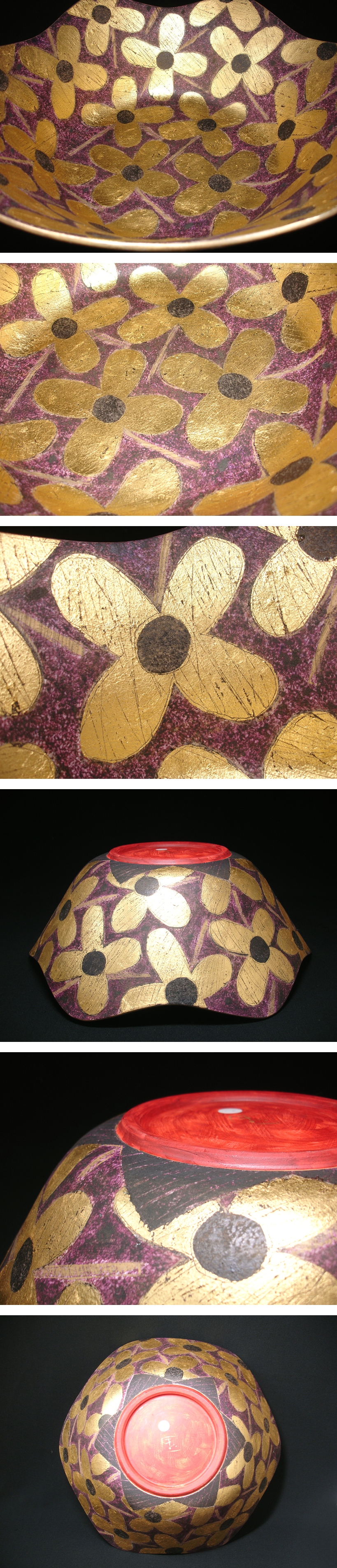 慶應◆【前田正博】秀逸作 色絵金銀彩輪花鉢 共箱付 直径39cmの大作! モダン陶芸のカリスマ的存在 收藏