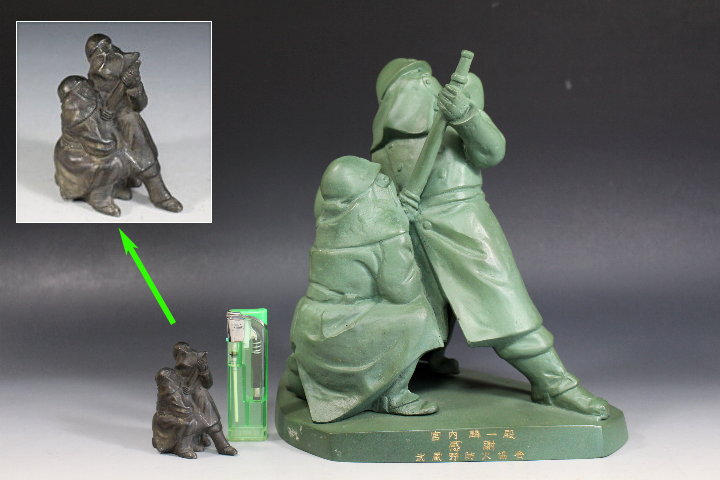 サイズ:高23.0cm 小さな三人の消防士の小さな彫刻です。 花田一男氏のミニチュア作品でしょうか? 詳しいことは分かりません。 材質もよく分かりません。 最後の写真は参考写真です。 大きい作品は花田一男氏の作品です。 同じ作者だと思いますがサインがありません。 同時出品しています。 写真をご覧の上ご入札宜しくお願い致します。 | |