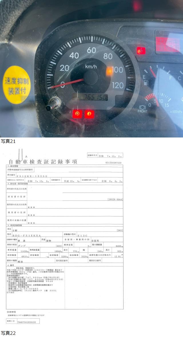 | 日野 グランドプロフィア ダンプ 平成22年式 積載量:8400kg 車検:令和8年6月5日 |