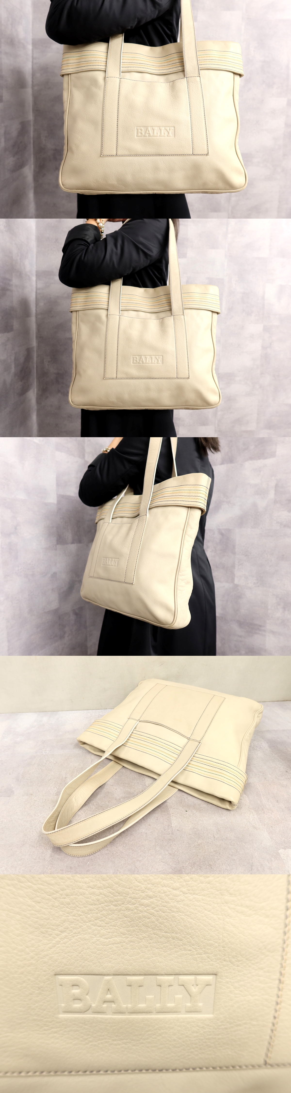 ●超美品●BALLY バリー●ロゴ型押し●ステッチ●カーフ レザー 本革●トート バッグ●ベージュ●肩掛け●A4 書類 収納 かばん●Js63585 收藏