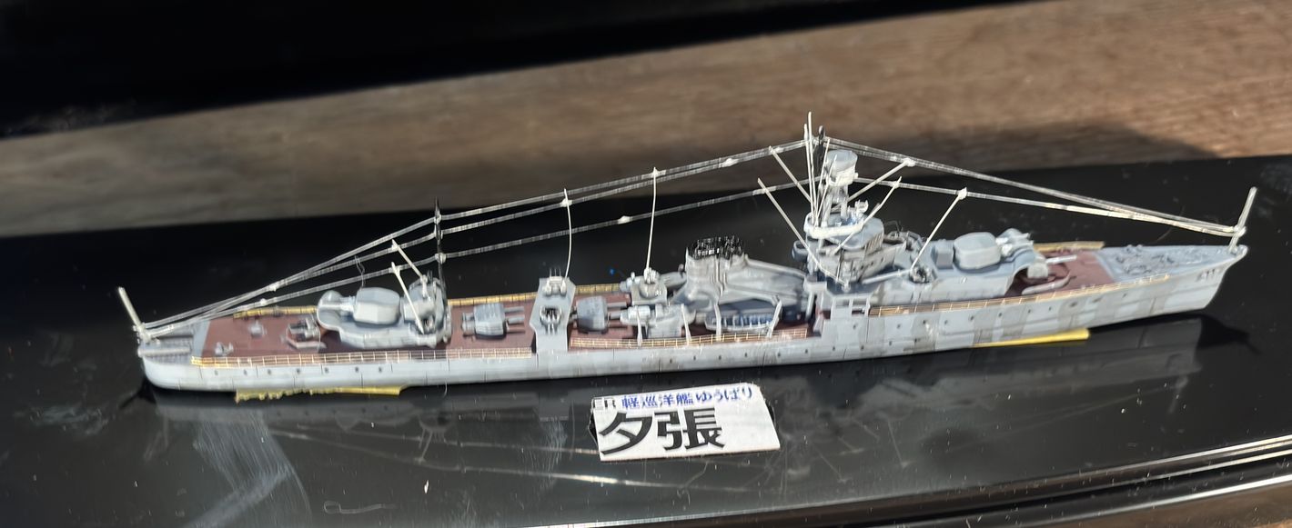 夕張は大正12年就航、関東大震災のお召し艦という使われ方もしたそうです。昭和19年4月26日にパラオで米潜水艦ブルーギルの3本の雷撃をうけ僚艦「夕月」の曳航で生き延びていたものの、翌28日に浸水が限界を迎え艦首から沈没したそうです。