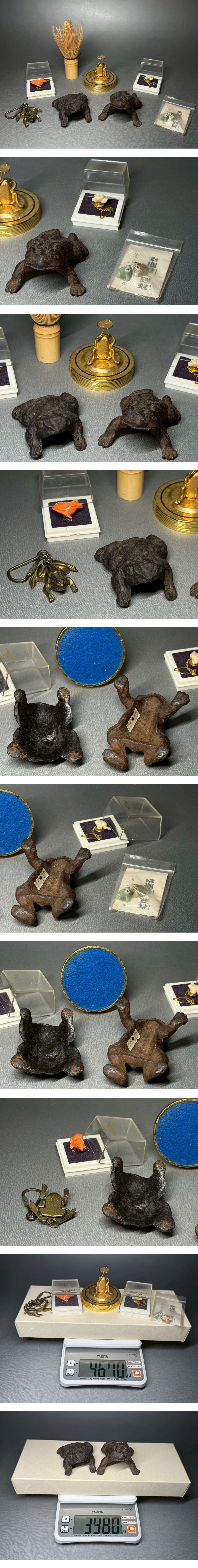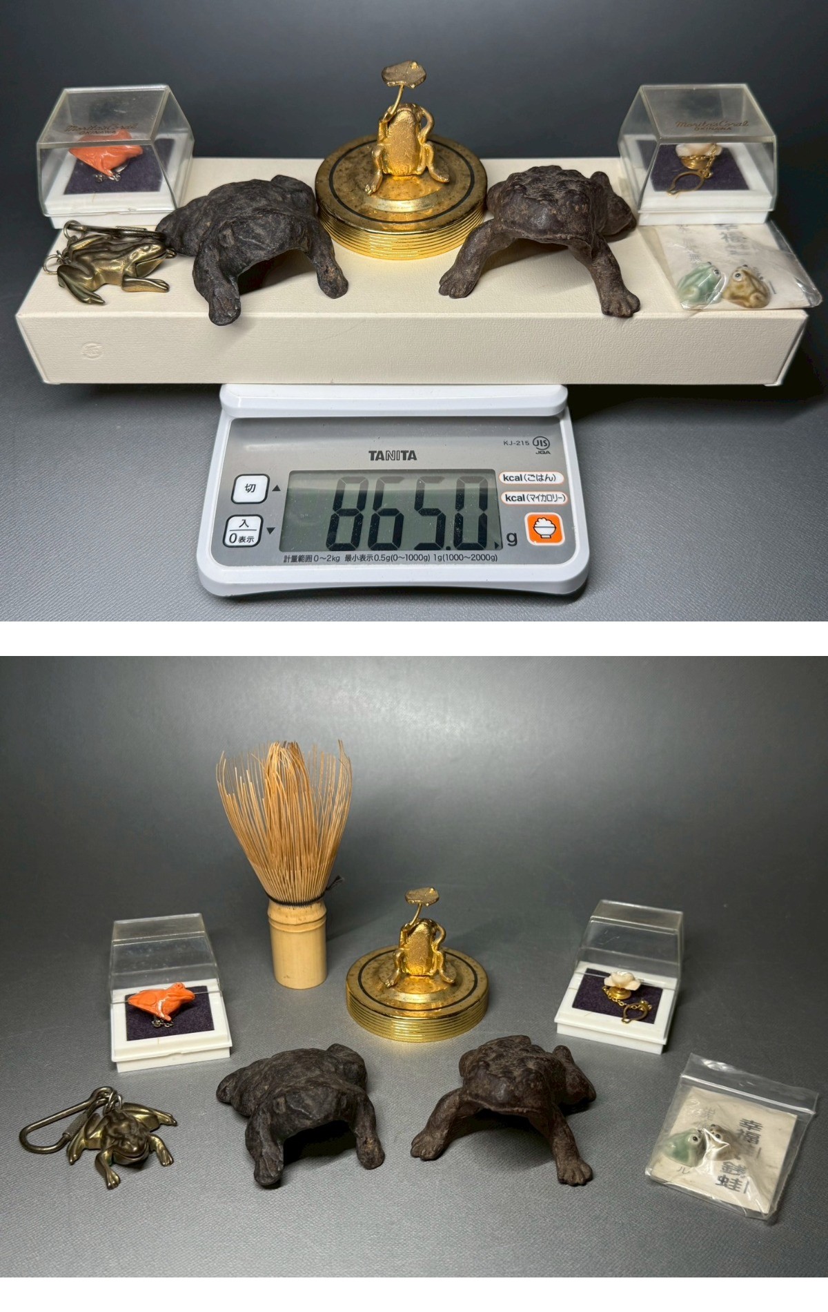 【蛙尽くし】蛙 置物 大量セット 鉄製 文鎮 磁石反応有 珊瑚調 真鍮 銭蛙 金運 招福 骨董 アンティーク かえる カエル 1000円〜 收藏