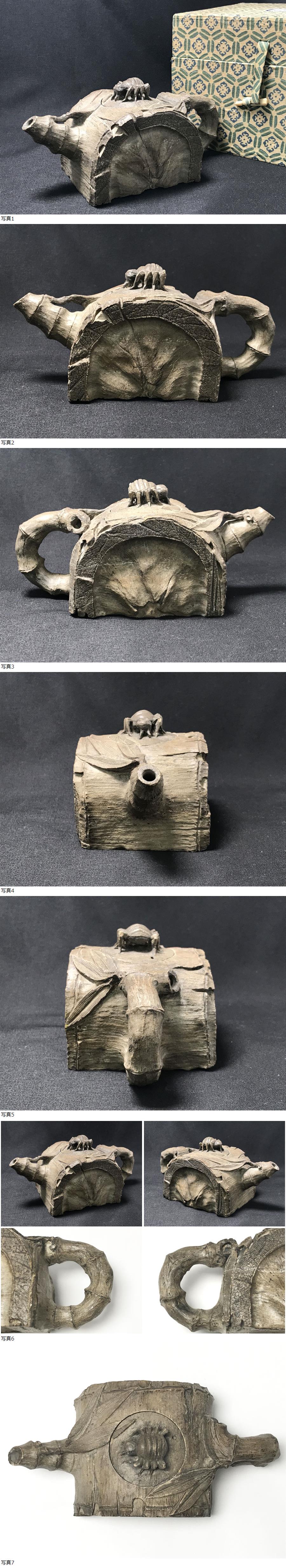 ◆未使用 石雕茶壺 鞠躬尽瘁 急須 宜興紫砂壺 切り株 蜘蛛 中国美術 重量約443.2g 古玩 中国古玩 唐物 煎茶道具 飾壺 古美術 骨董 共箱付 收藏