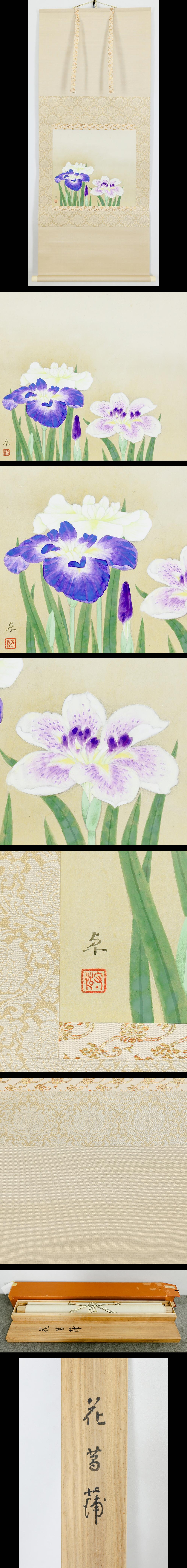 【真作】【WISH】若林卓「花菖蒲」日本画 金泥仕様 掛軸 太巻 共箱 美しい彩の花菖蒲 〇日本美術院院友 前田青邨門 #26010041 收藏