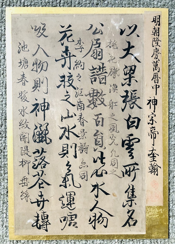 ★【屏風剥がし③】『明14代皇帝・萬暦帝/明朝隆慶萬暦中・神宗帝奎翰』《1563~1620年》《極札付》古書 古文書 古筆 手鑑 断簡 紙本 收藏