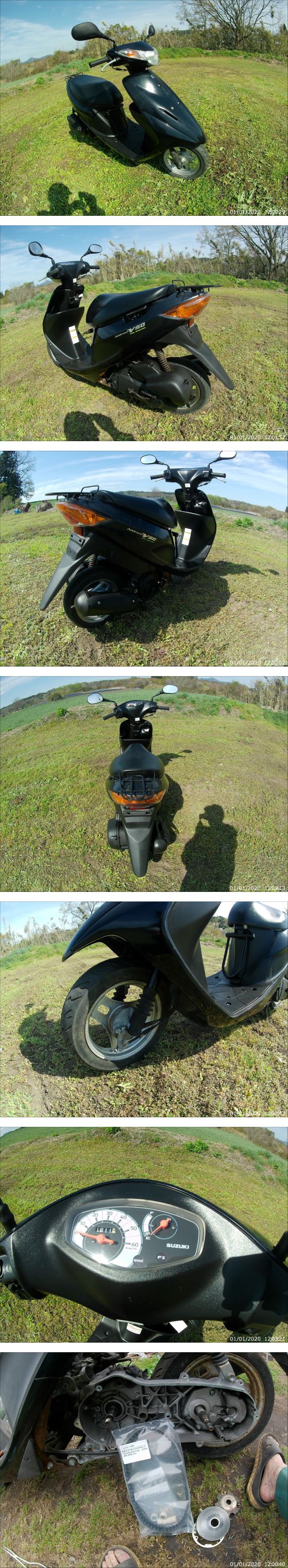 | 【商品の説明】 メーカー:スズキ スクーター アドレス V50 CA44A エンジンは4ストです。 コンピューター制御されたクリーンな排気で、始動性がとても良く燃費もとても良いため通勤に使えば、通勤費の節約にもなります。 スズキエンジンタイプ空冷4ストローク・単気筒SOHC・2バルブ モデル名アドレス V50 CA44A エンジン始動方式セル・キック併用 最高出力 5.2ps(3.8kw)/8500rpm 最大トルク0.46kg・m(4.5N・m)/6500rpm 排気量49cc 燃料消費率76.0 km/L ( 30 km/h走行時) 燃料タンク容量4.5リットル 始動テスト動画です。https://youtu.be/wBoT01iwbjI 【商品の状態】 エンジン始動OK キック.スターター共に一発始動OK 鍵純正1本 書類あり、お引き渡しに販売証明をお渡しします。 勿論、販売照明をお付けしますので、最寄りの役場、市役所でナンバー貰ってください。 自賠責保険無し 整備箇所 カーボン噛み圧縮不良をエンジン組み直し整備しました。 駆動Vベルト、スライドローラー国産新品交換 エアークリーナースポンジ交換 エンジンオイル交換 プラグ新品交換 灯火装置異常無し フロント、リアのブレーキの効きは良好。 タイヤ前後減りは少ないです。 バッテリー充電 セルモーター異常無し 鍵1本スズキ純正 ホーン異常無し 結構外観も綺麗に見えますがすが、見えない所に小さな割れ在ります。 3Nご理解頂ける方のみご入札お願いします。 説明や動画でも解らないところがあると思います。 お近くであれば、実際に動かしてみてください。 現物の下見okなので質問からお願いします。 こちらの住所等を教えます。 不明点はご質問ください。 発送方法: 発送ですがお引き取り出来る方のみとさせて頂きます。 こちらからどこかに持ち込んだりは出来ません。 よろしくお願いします。 お引き取りは、都合のいい日をご連絡ください。 いつでもお渡しできます。 期限はありませんがお早めにお願いします。 東北6県でしたら最大で2.5万で配達します。ご相談下さい。 | ||