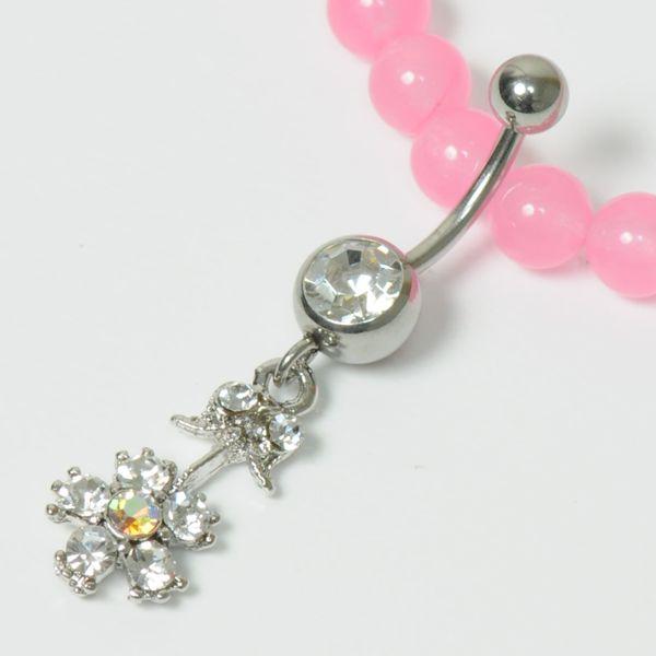 ヘソピアス ゴージャス フラワーデザイン(花柄)ラインストーン 14G(1.6mm)クリアー ジュエル バナナバーベル ロブ ボディピアス h533-3 ┃ 收藏